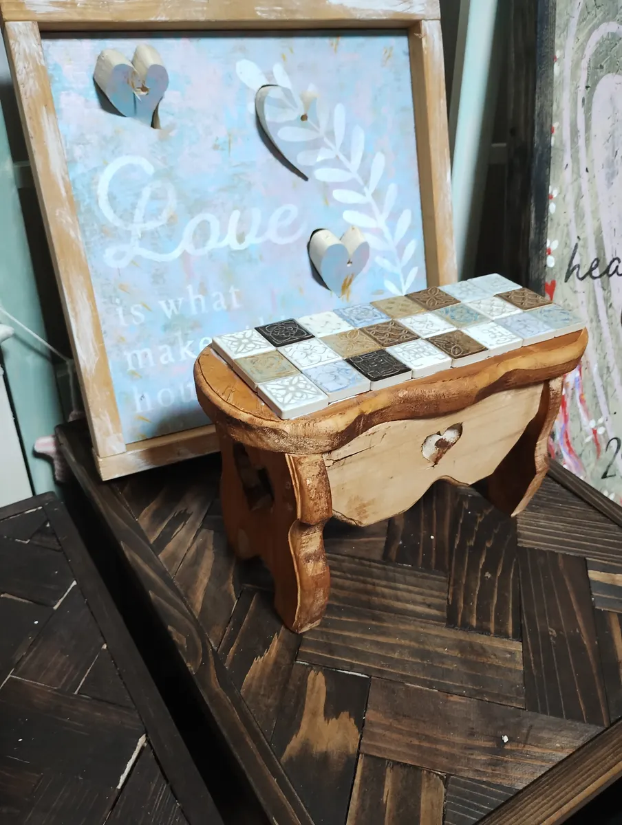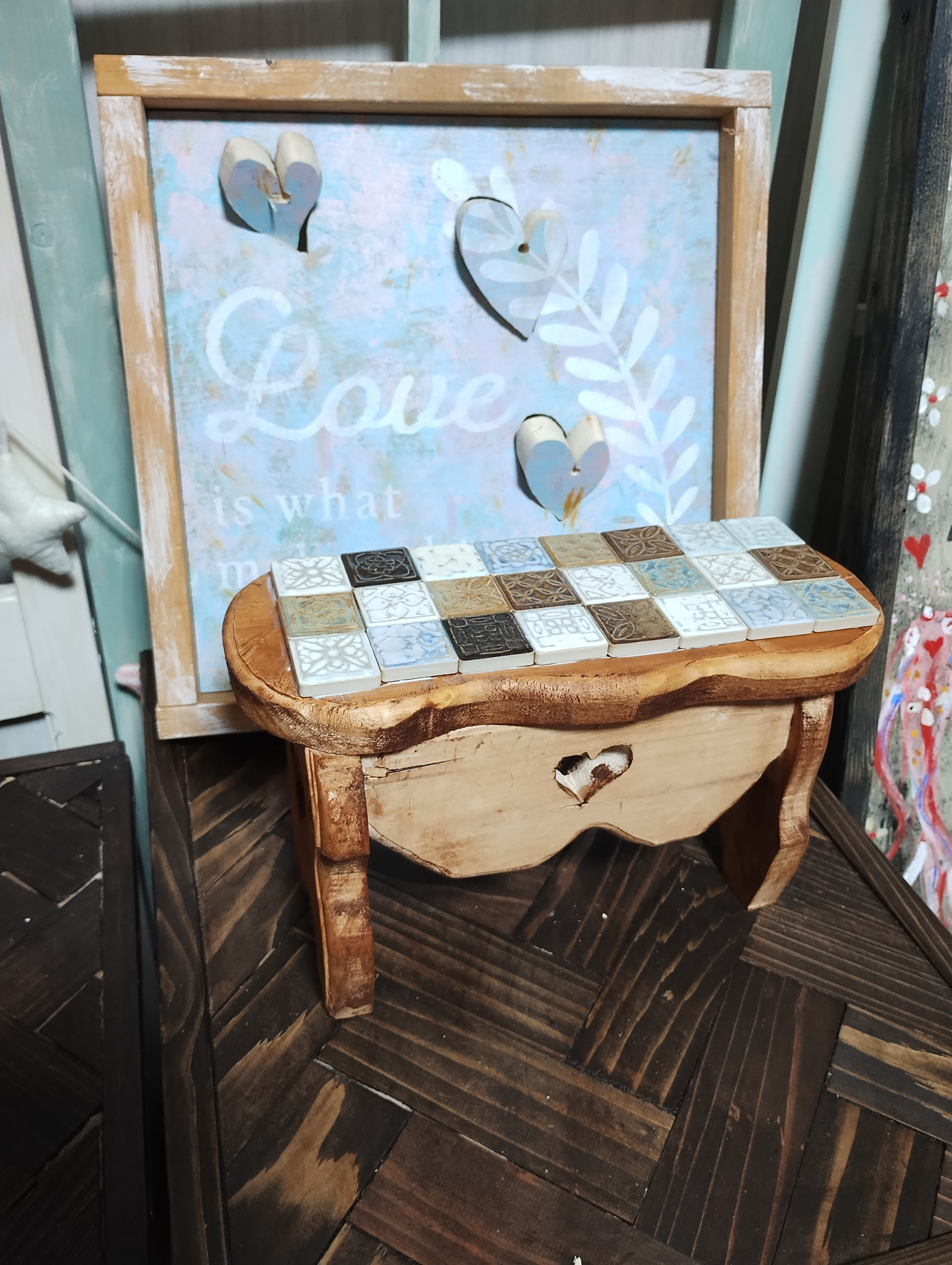 投稿を表示オシャレな飾り台ですね❤️アンティークなタイルもとても素敵です😊