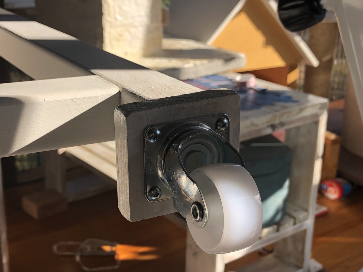 柱がキャスターより小さい場合は、「ねじ込み式のキャスター」を使うといいかもしれませんね。柱の真下にドリルで穴をあけて、「鬼目ナット」をねじ込むと使えると思います。