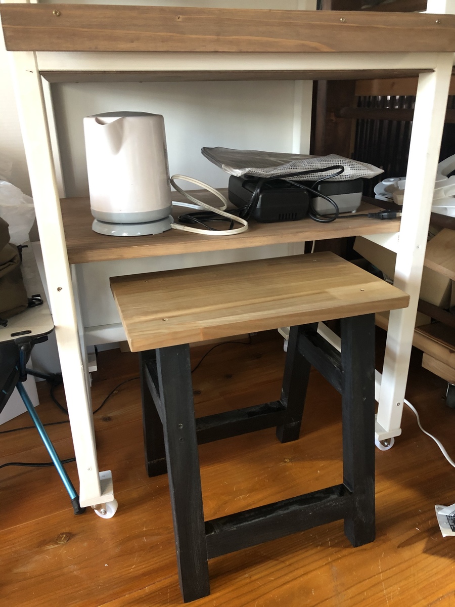 ミシン椅子が、意外に、このレンジラックに、フィットしてるのに、驚いてます😱👍