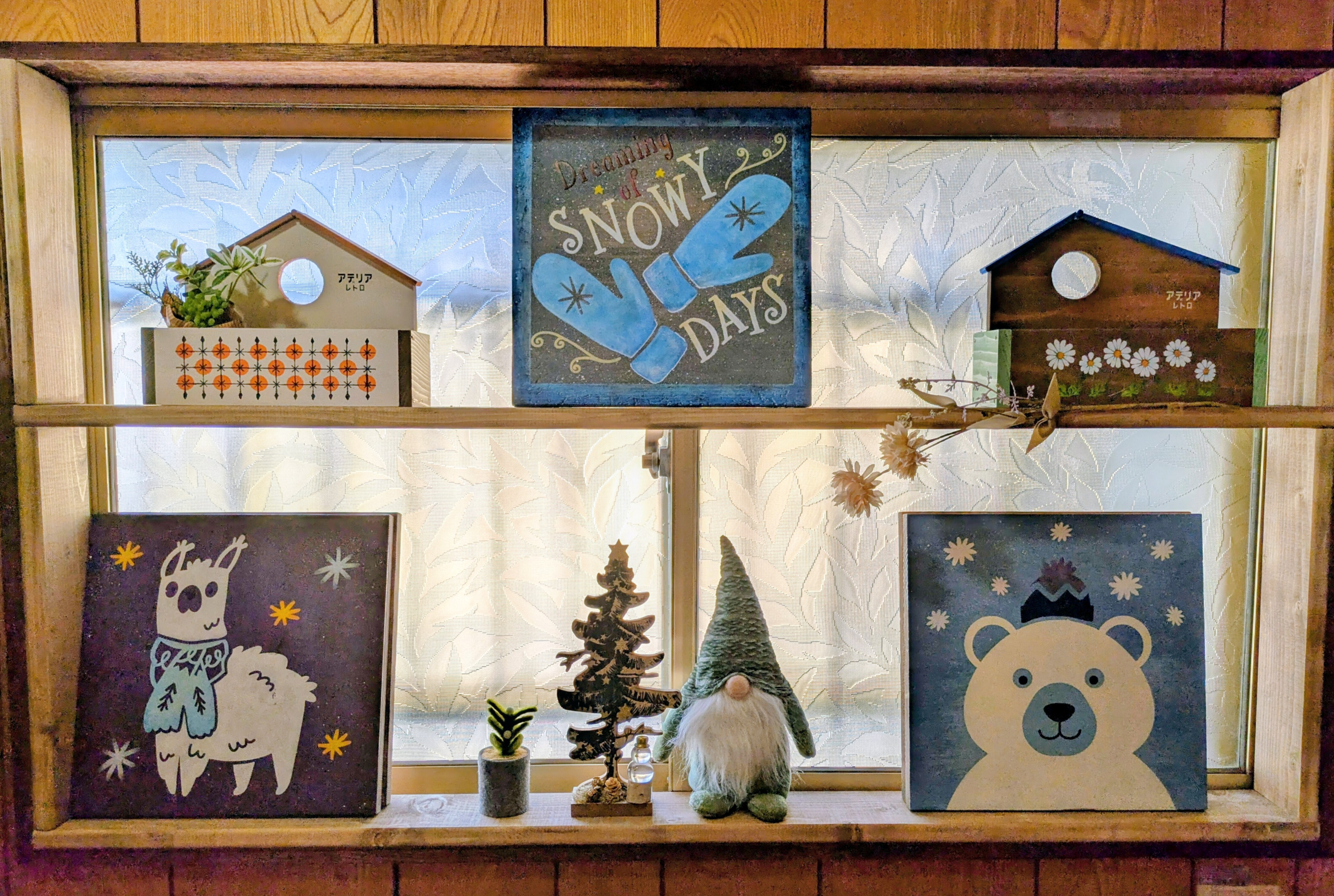 ミニサインボード冬の3部作【窓枠ギャラリーにて】