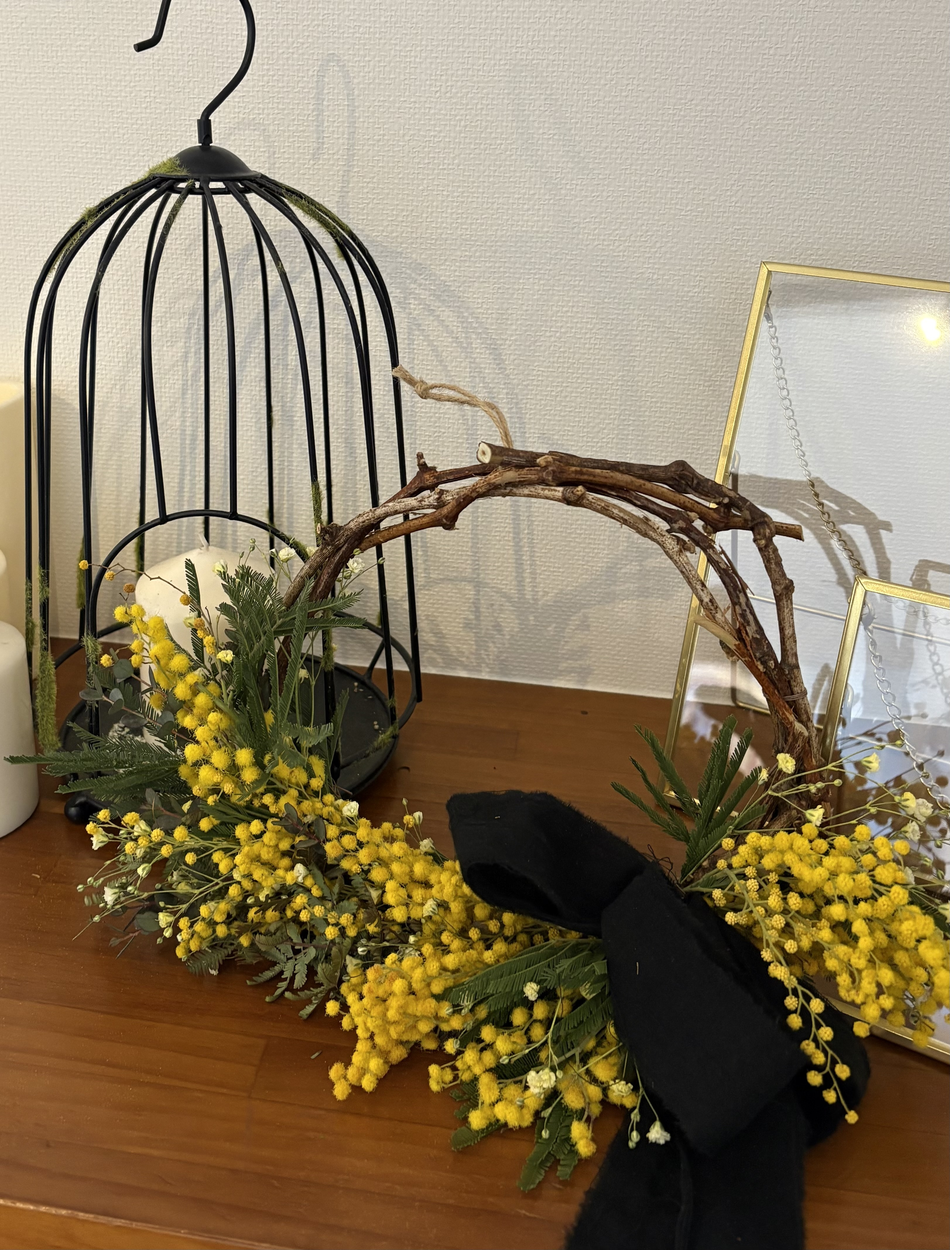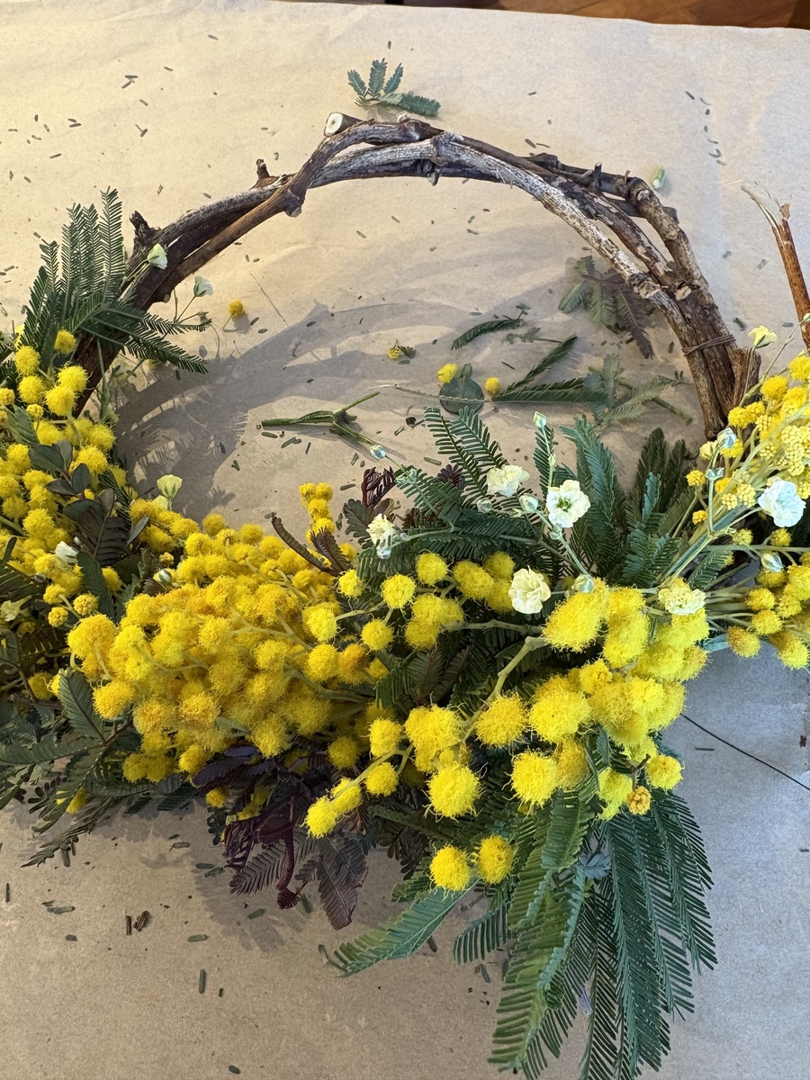 今日ミモザのリース売ってるのをみたばかりだったんですが、輸入物だったんですね‼️随分早いなぁと気になってたので、納得です☺️