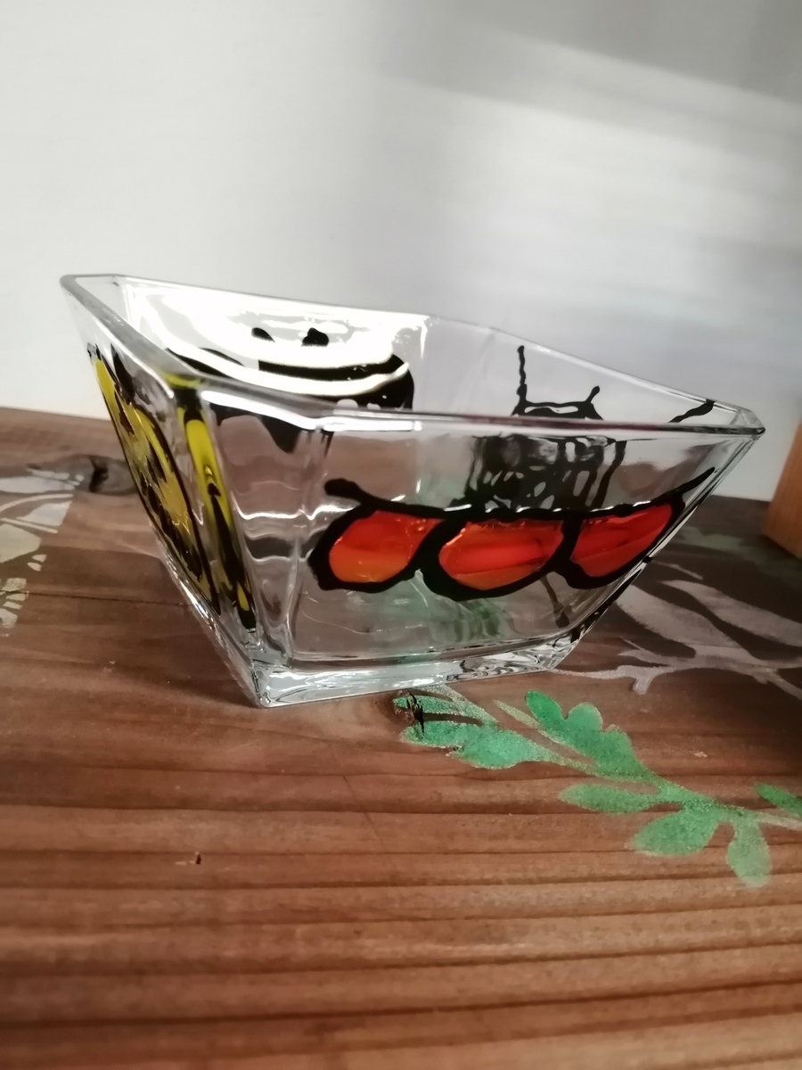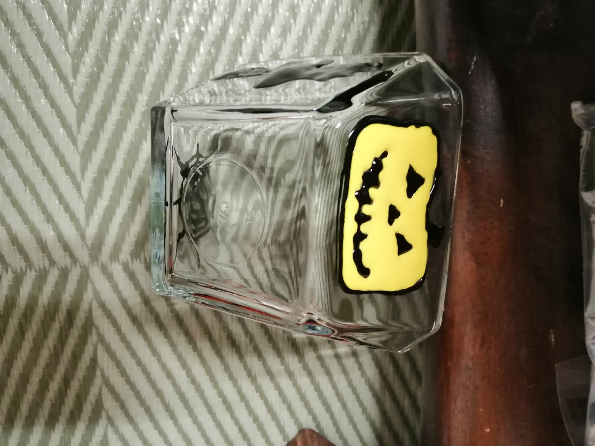 まずは入れ物に、ガラス絵の具で、フリーハンドでハロウィンっぽくカキカキ🖌️