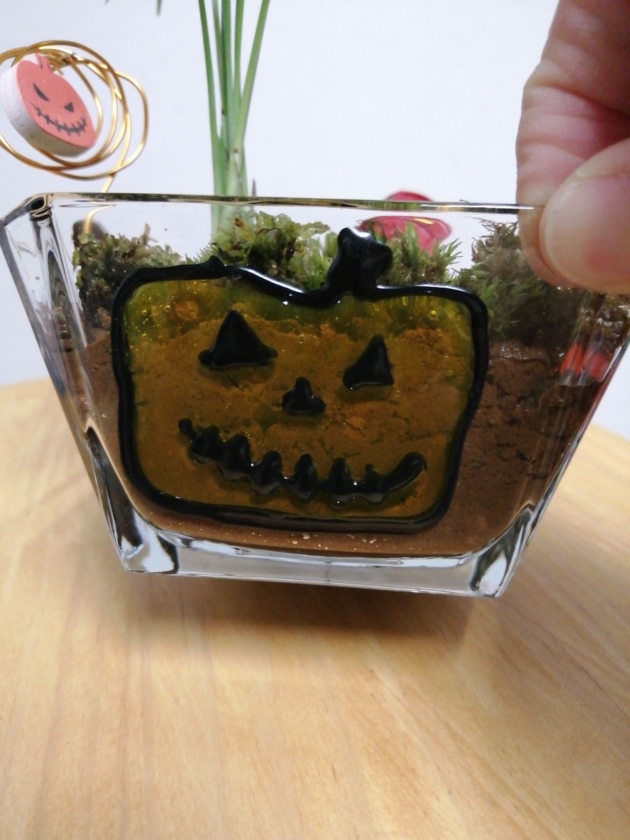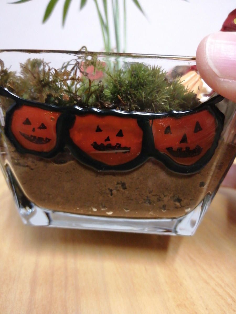 苔のテラリウムをハロウィンバージョンで、作りました✨