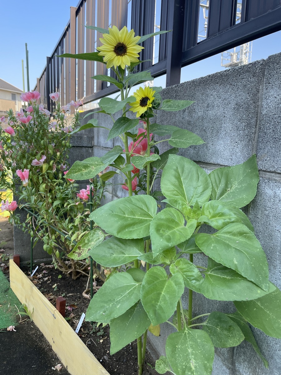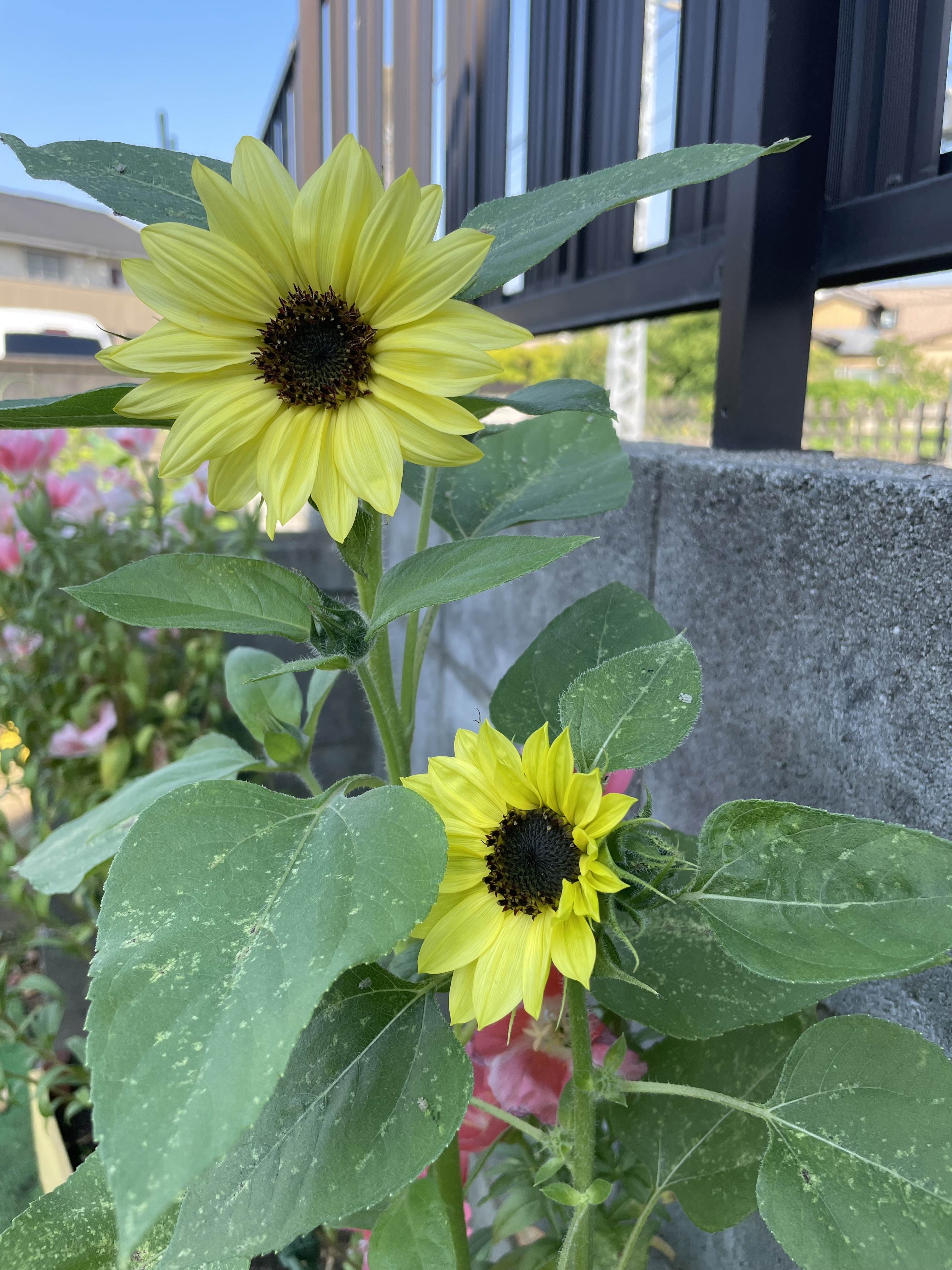 よく見かけるヒマワリの花よりレモン色ですね。爽やか〜🌻