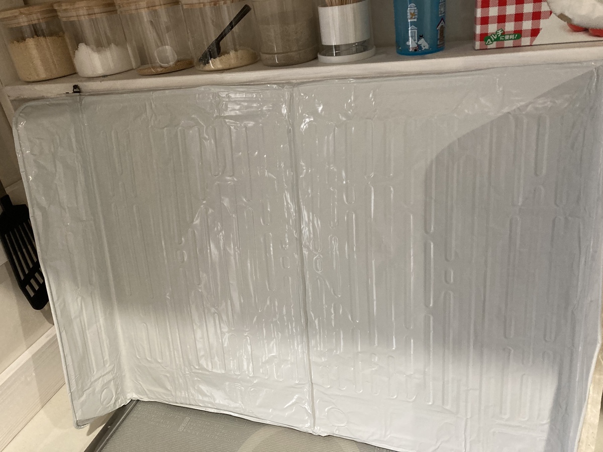 ついでに、とIHカバーも一緒に作りました。裏側には油はね防止のカバーをくっ付けて、少しでもはねを防げればと。料理中は掛けて倒れないように。ただ掛けづらいので直すかも🤔
