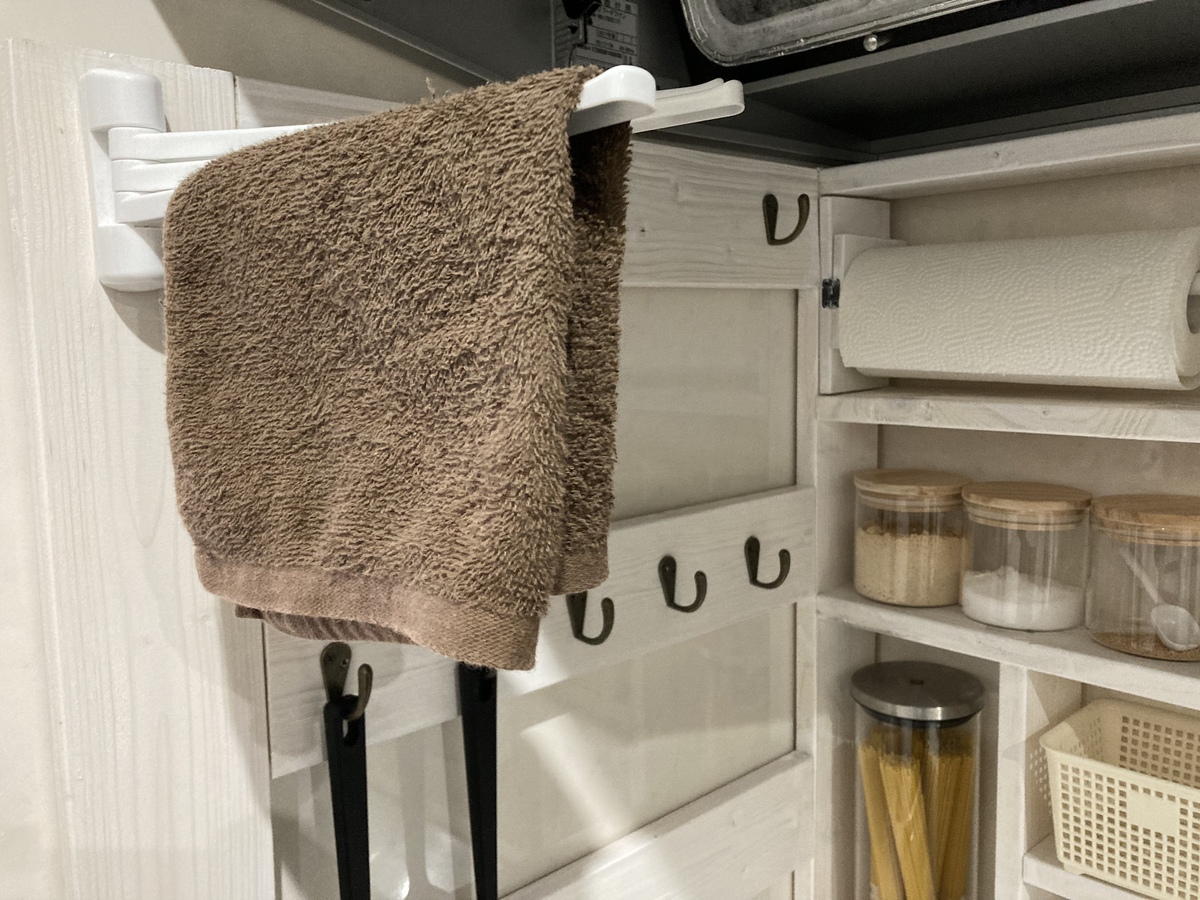 キッチンペーパーのところは蝶番で動かして付け外しが楽に出来るように。磁石でくっつくようになってます。