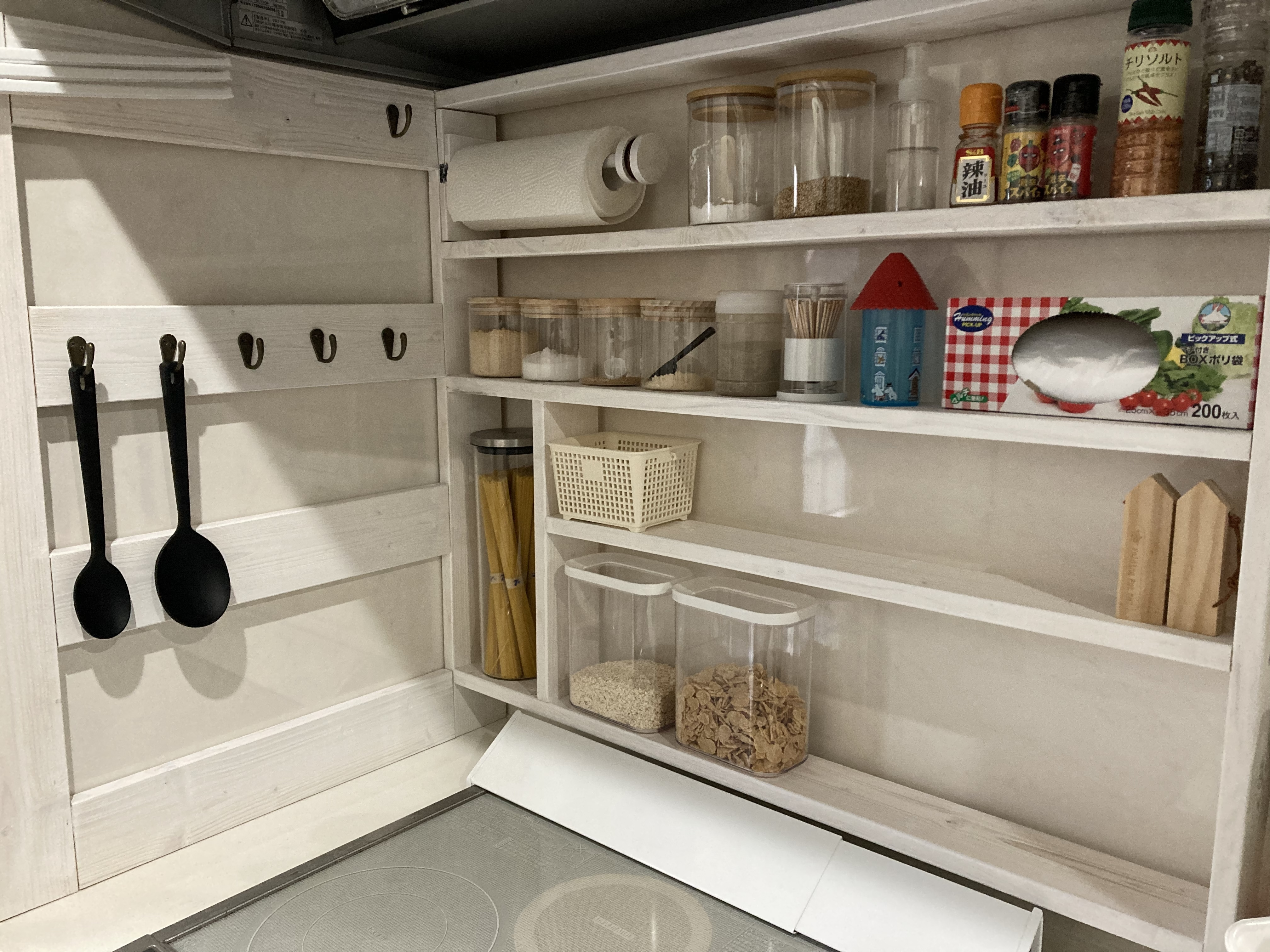 片付けが苦手な私。よくIH周りに物を置きっぱなしにするので、旦那に棚でも作ったら?と言われ…(笑)