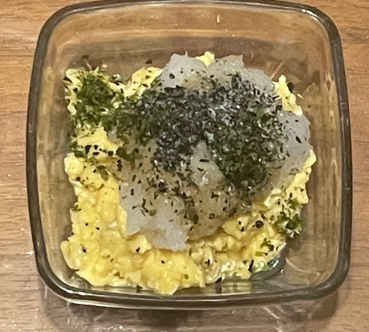 ・繋ぎものとろとろスクランブルエッグに大根おろし、青海苔、黒すり胡麻、昆布醤油掛けたやーつ✨