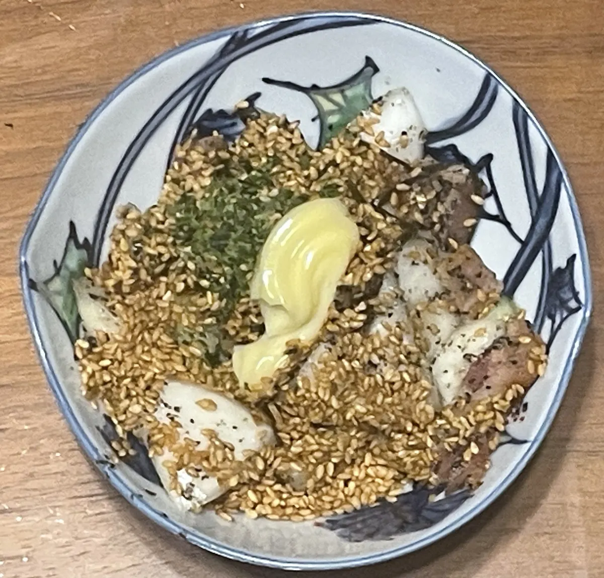 (うん、業務用の1kg袋入り金胡麻そのまま掛けたら量がバグって金胡麻しか見えない〜🤣🙌💛💥‼️💨✨)