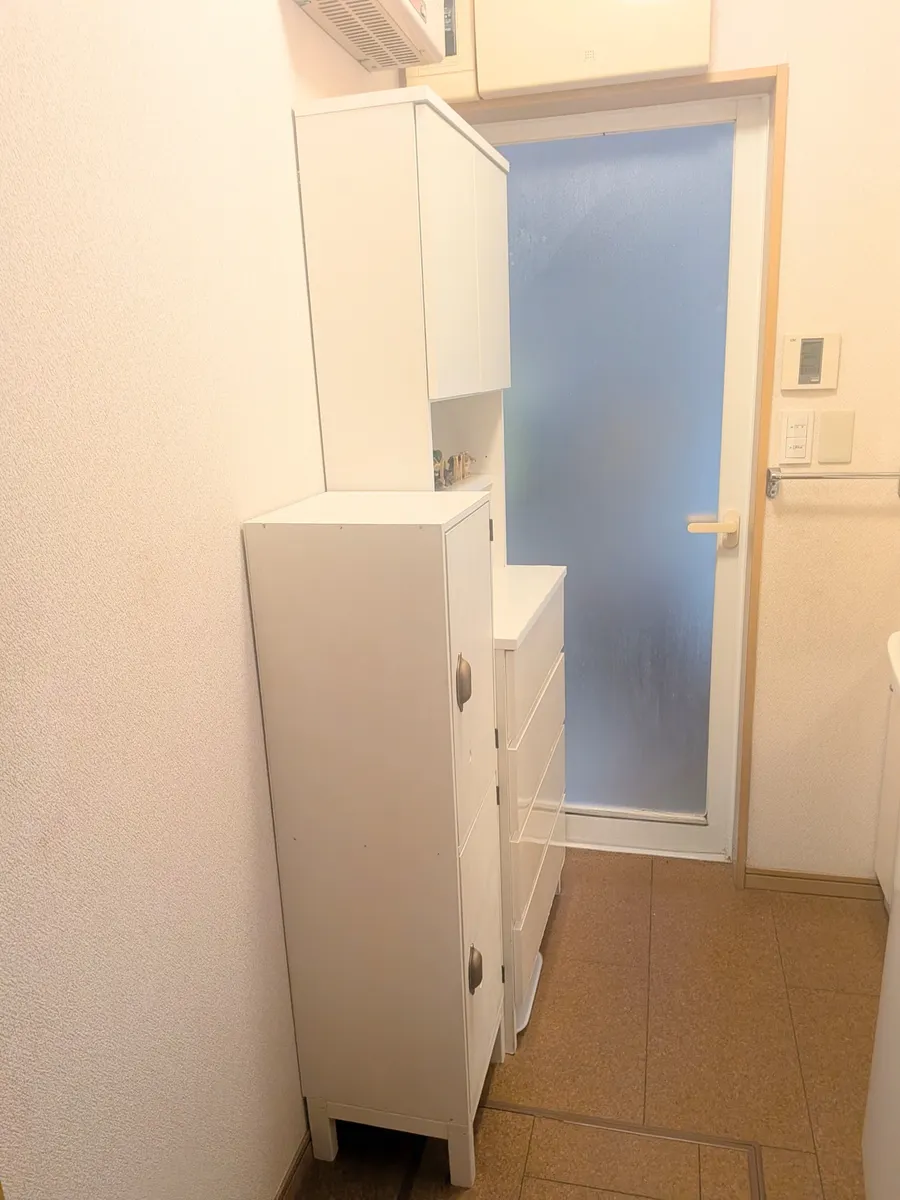 投稿を表示お揃いみたいで素敵ですね💕棚を固定でつけるなら、高さ自由ラックみたいに両側に板をつけるのもアリかなと思います☺️板の厚さ✖️2枚分横幅は狭くなっちゃいますが💦軽いものを収納するなら、100均の板でも大丈夫だと思います。