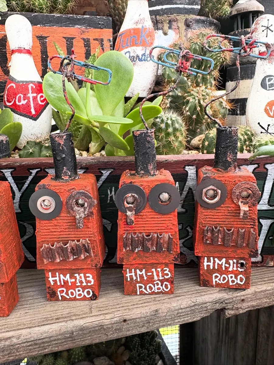 ロボット🤖の頭に乗せてる帽子はボトルキャップかな?見てるだけで笑顔になります❣️