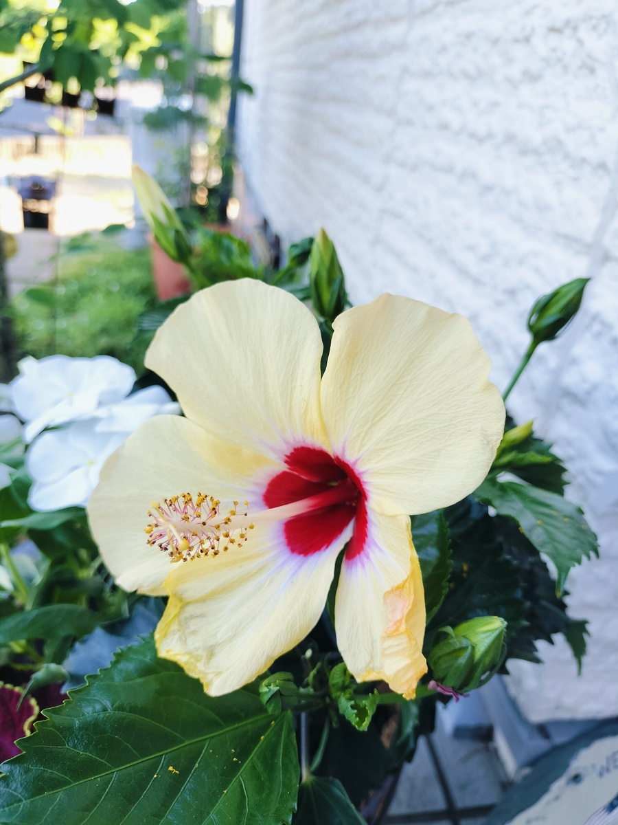 ハイビスカスの色を寄せ植え直前まで迷って結局イエロー ユカリンにしました。