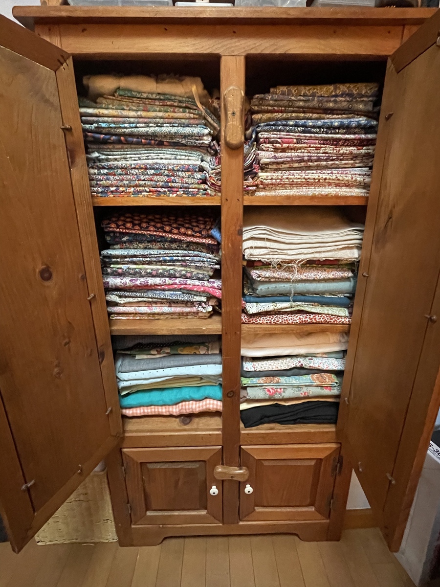 投稿を表示素敵な収納家具~❣️😍と思って拝見したら…ギッシリの布❣️しかもALLリバティーって❣️もうビックリのオンパレードで心拍数上がりました😄