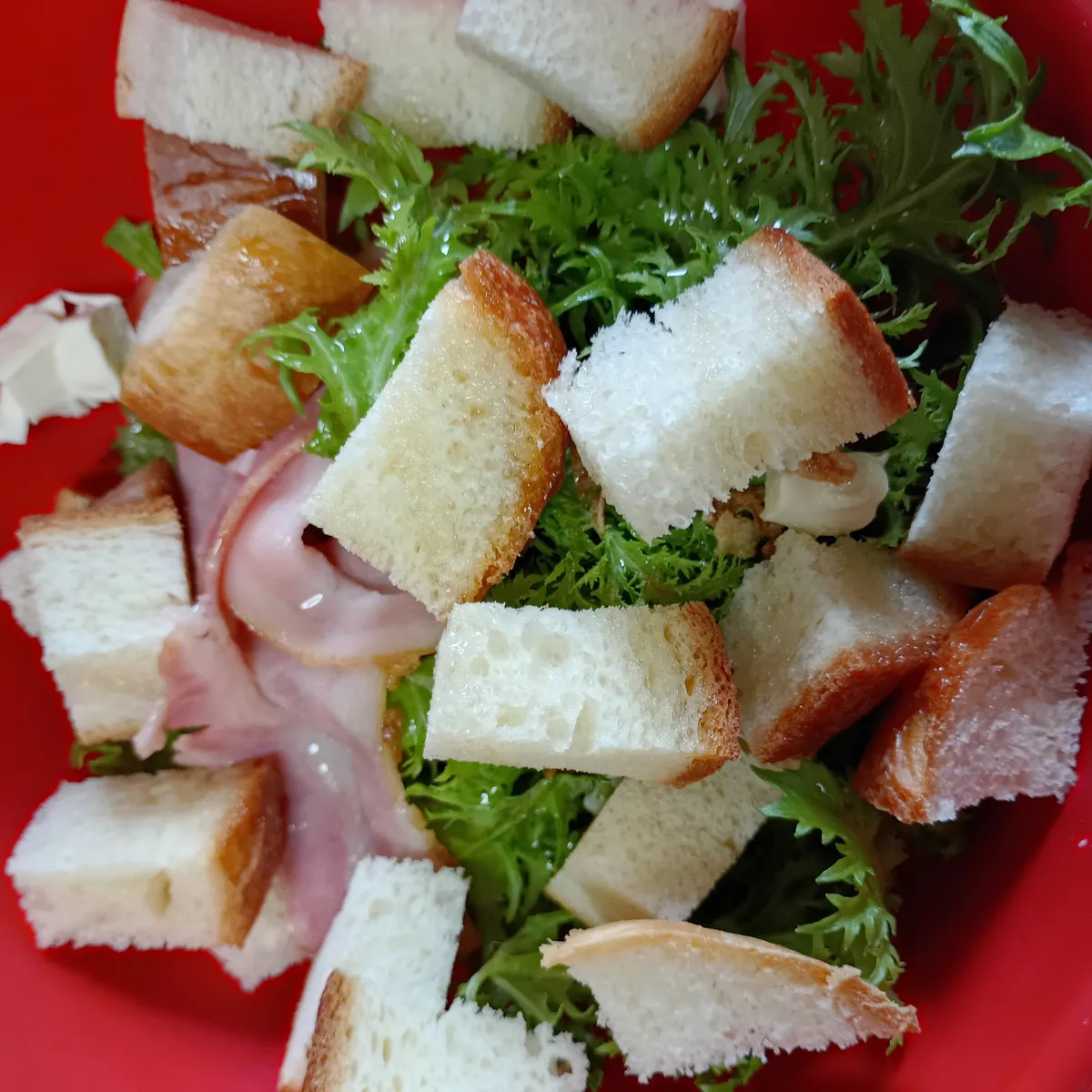 ハム、チーズに塩気があるので、オリーブオイルだけで味は👍👍