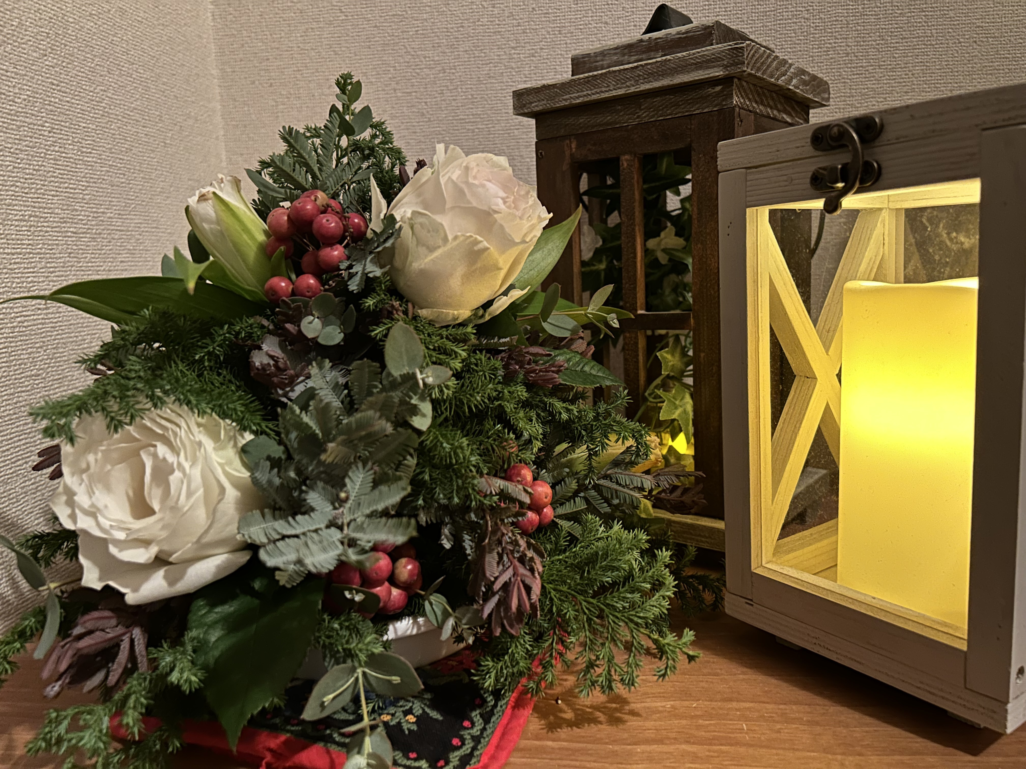 店舗オリジナルWSにて生花とグリーンを使ったクリスマスのアレンジメント🎄を作りました❣️