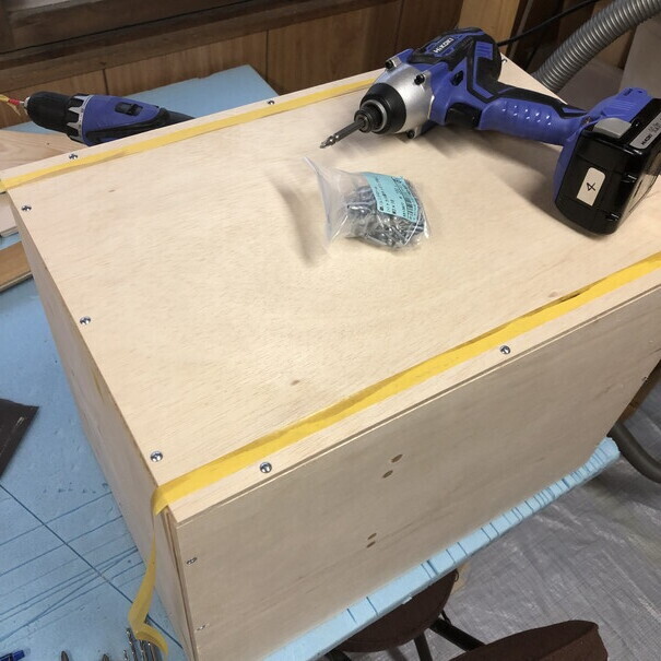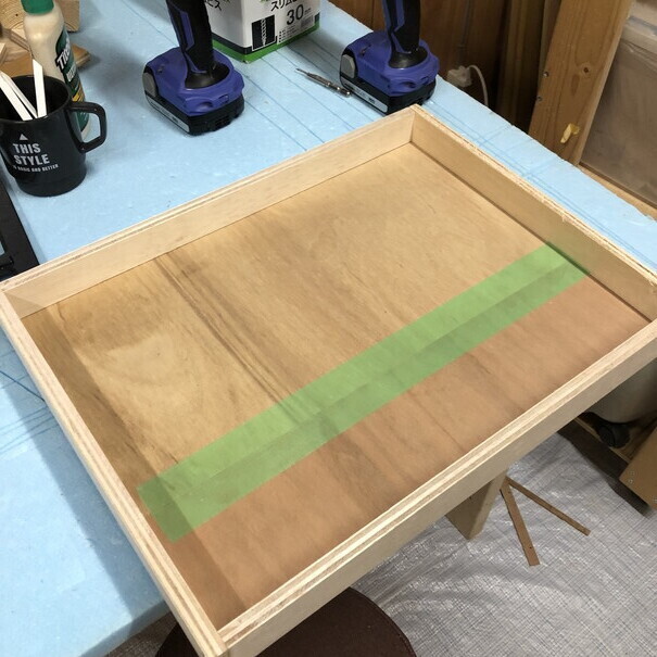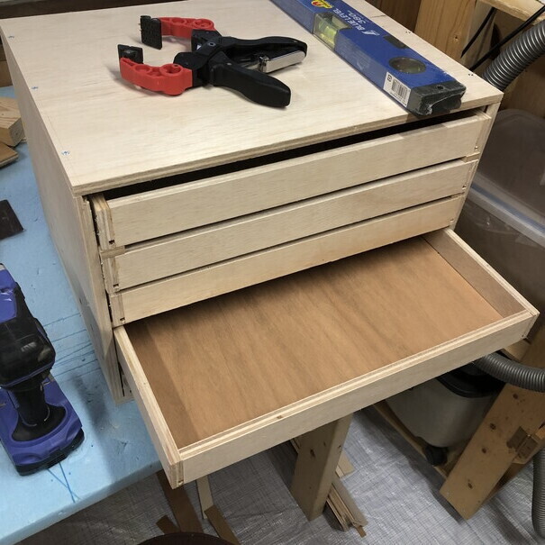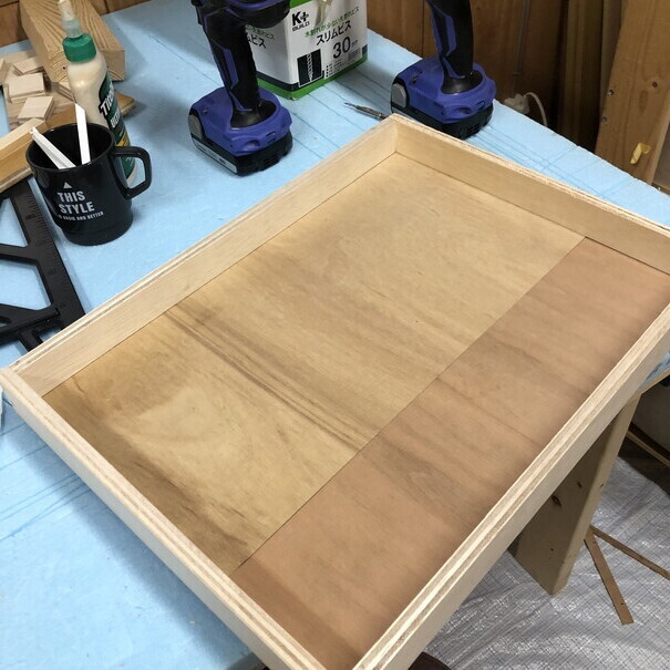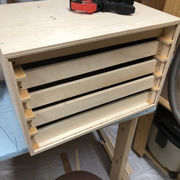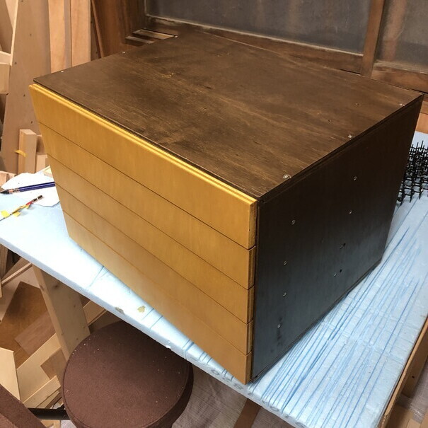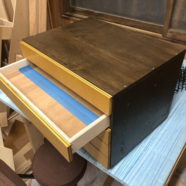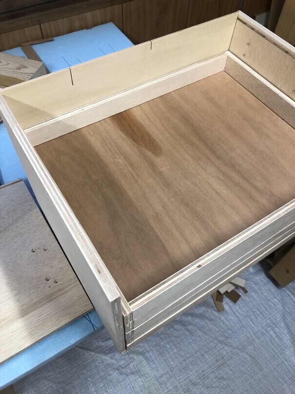 前板を付ければ、引き出しは完成です。その前に、キャビネット本体を作りましょう。
