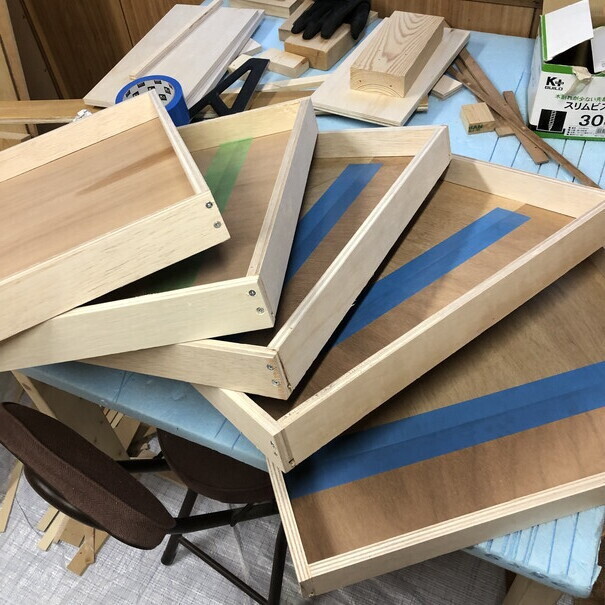 端材から所定の長さを切り出しながら、5個分の引き出しを作りました。