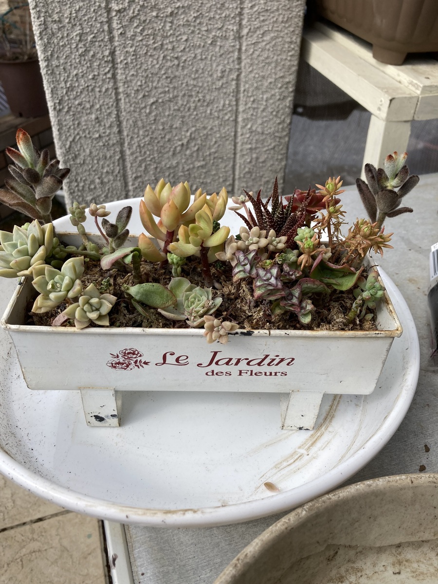 トップ > グリーン > 寄せ植え仕立て直し🍀 ルナルナ🌙 2024/03/10 21:54 寄せ植え仕立て直し🍀 今日は、庭のパトロールや草取りなどやりたいこといろいろ出来ました✌️暑い夏も玄関前飾ってくれていた寄せ植え😍 そんなスカスカな寄せ植えも葉刺しで大きくなった苗達で仕立て直し😊かわいくなりました✨ いいね 共有する 共有する X LINE リンクをコピー コメントする 2 件の返信 (新着順) ミュートしたユーザーの投稿です。 投稿を表示 きょろっち 2024/03/11 07:32 もりもりに復活🥰 また玄関先が素敵になりますね✨ いいね 返信する ミュートしたユーザーの投稿です。 投稿を表示 はっちゃん 2024/03/11 09:44 きょろっち 可愛いですね🌵 いいね 返信する ミュートしたユーザーの投稿です。 投稿を表示 ルナルナ🌙 2024/03/11 20:53 きょろっち コメントありがとうございます😊 多肉ちゃんもいろいろとやりたいですが、もう少し暖かくなるまで我慢ですかね~🥲 胴切り、葉挿したくさん増やしたいです✨ いいね 返信する ミュートしたユーザーの投稿です。 投稿を表示 ルナルナ🌙 2024/03/11 20:58 はっちゃん コメントありがとうございます😊 そろそろ家の中の多肉ちゃん達もお外に出したいです~❤️ いいね 返信する ミュートしたユーザーの投稿です。 投稿を表示 じゅんちゃん 2024/03/10 22:00 モリモリ感♥が ありますね😀 いいね 返信する ミュートしたユーザーの投稿です。 投稿を表示 ルナルナ🌙 2024/03/11 20:52 じゅんちゃん コメントありがとうございます😊 どうにかかたちになり一安心。ばらそうかとも思ったんですが、隙間を頑張って埋めました😊 いいね 返信する