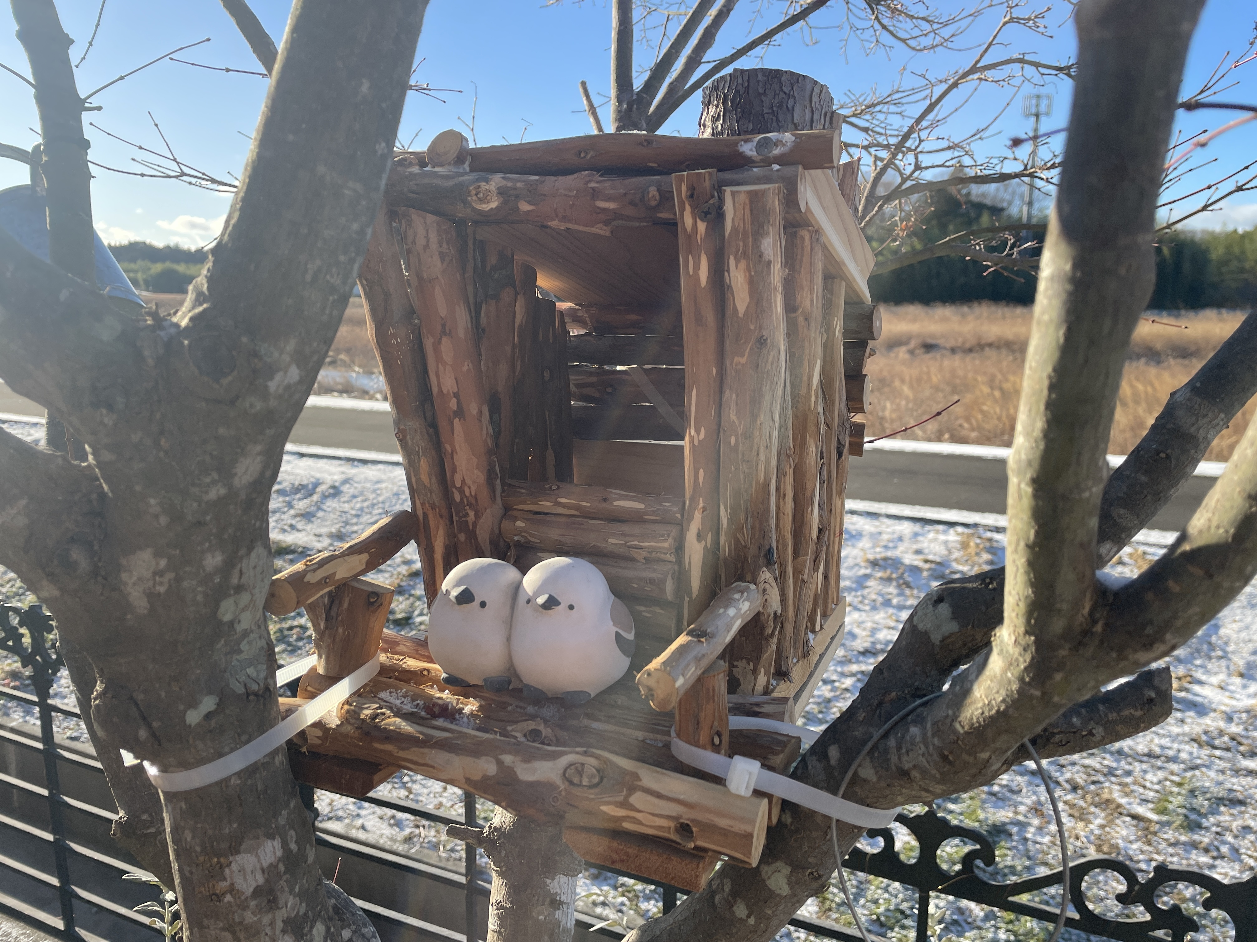 本当の鳥が来るといいな、でもシマエナガいるうちは来ないかも、先住人がいるか🦉となりますね😆チクワちゃんに呼んてもらおう🦜