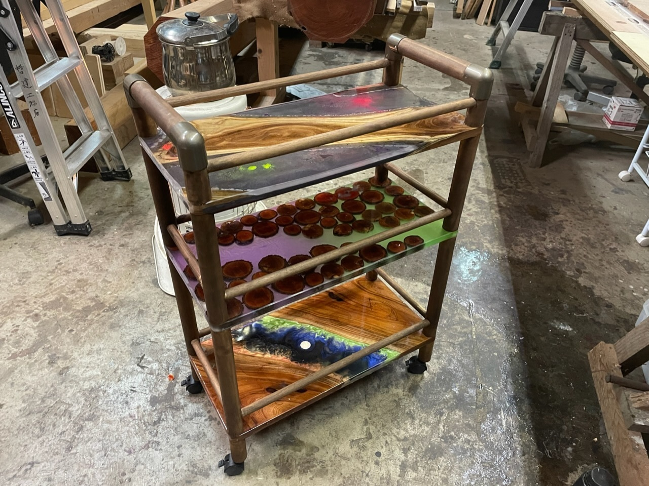 くみもくシェルフのポールとキャスターを利用した木製ワゴンです。