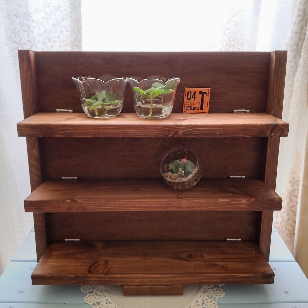 このシェルフも、ディスプレイを映えさせるためホワイトにする気マンマンだったのですが、ステインのみだったので残念でした😭