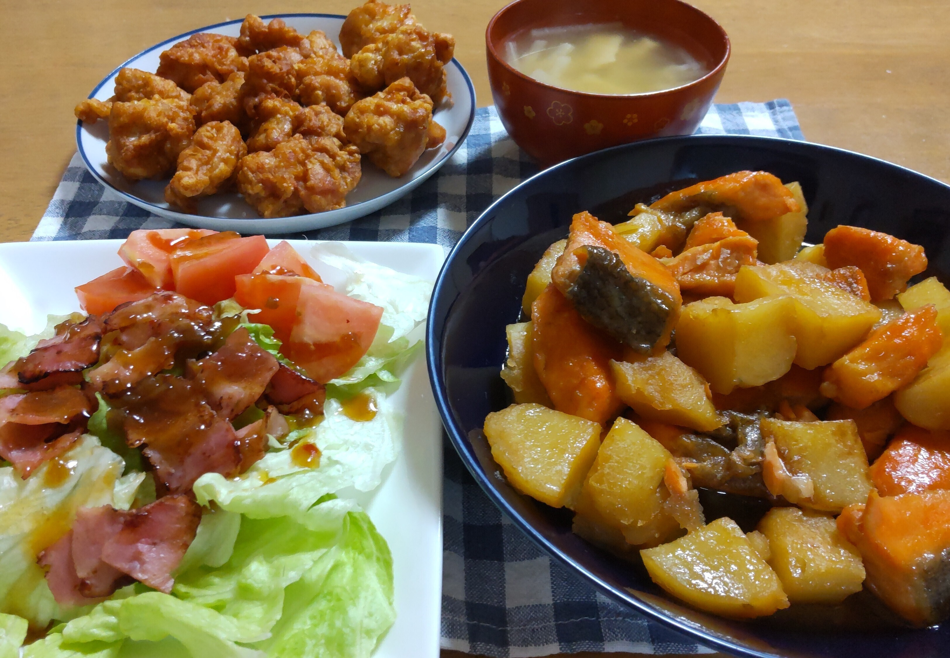投稿を表示唐揚げと鮭とじゃがで、ダブルメインですね😋こりゃご飯が進むわぁ🍚💕