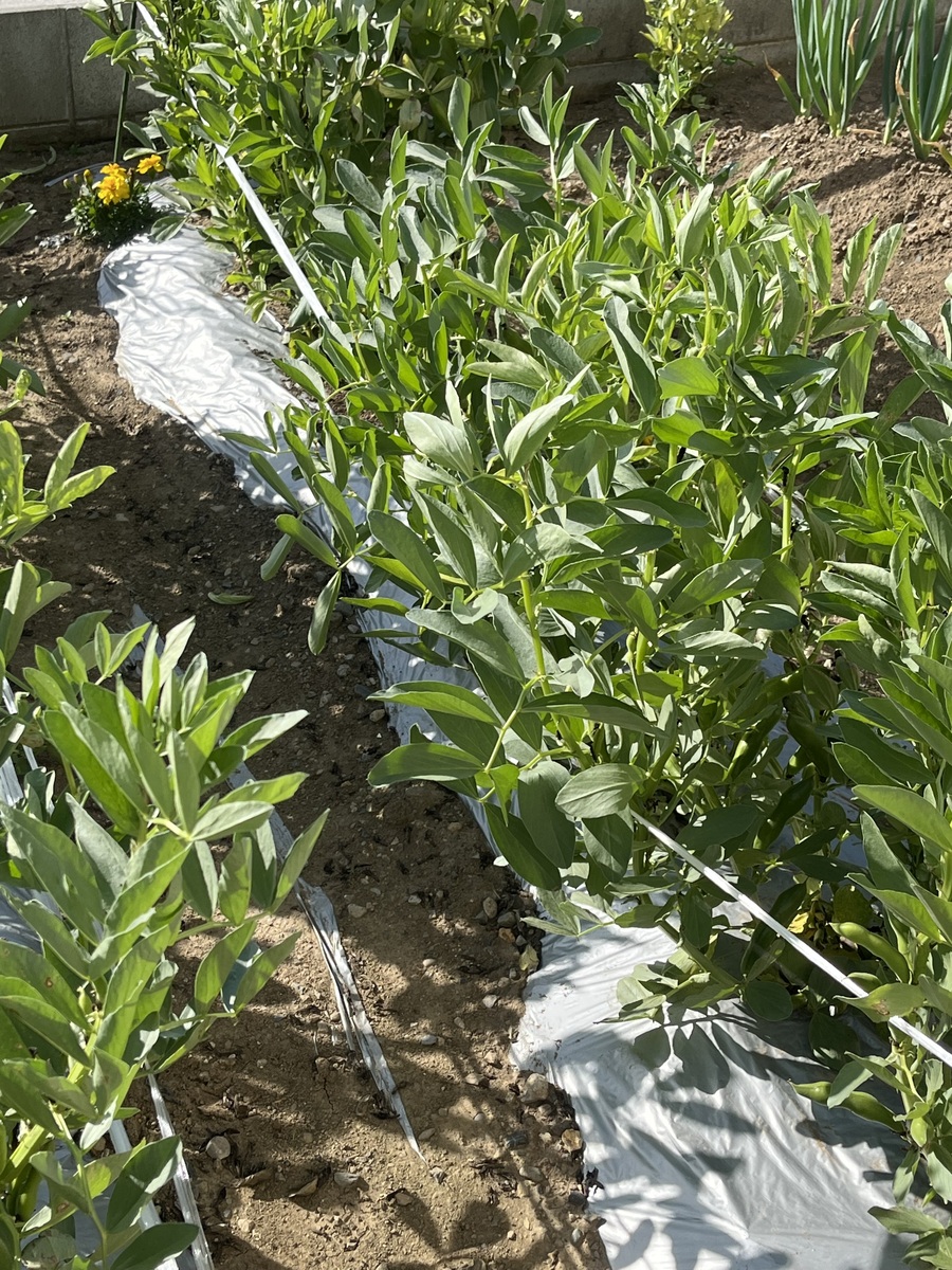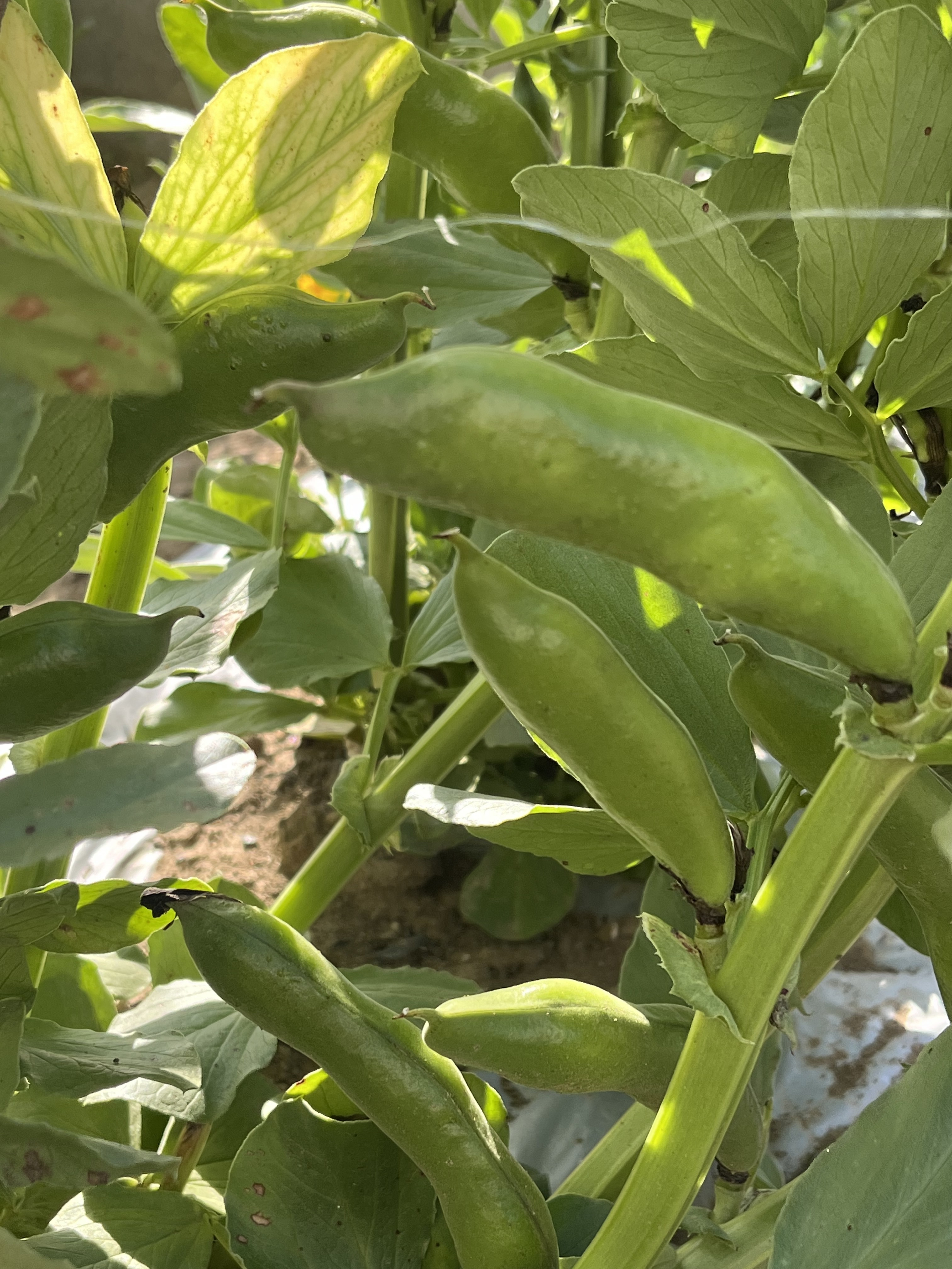 投稿を表示うちのそら豆も収穫期を迎え、さやが下に向いてきました😊
