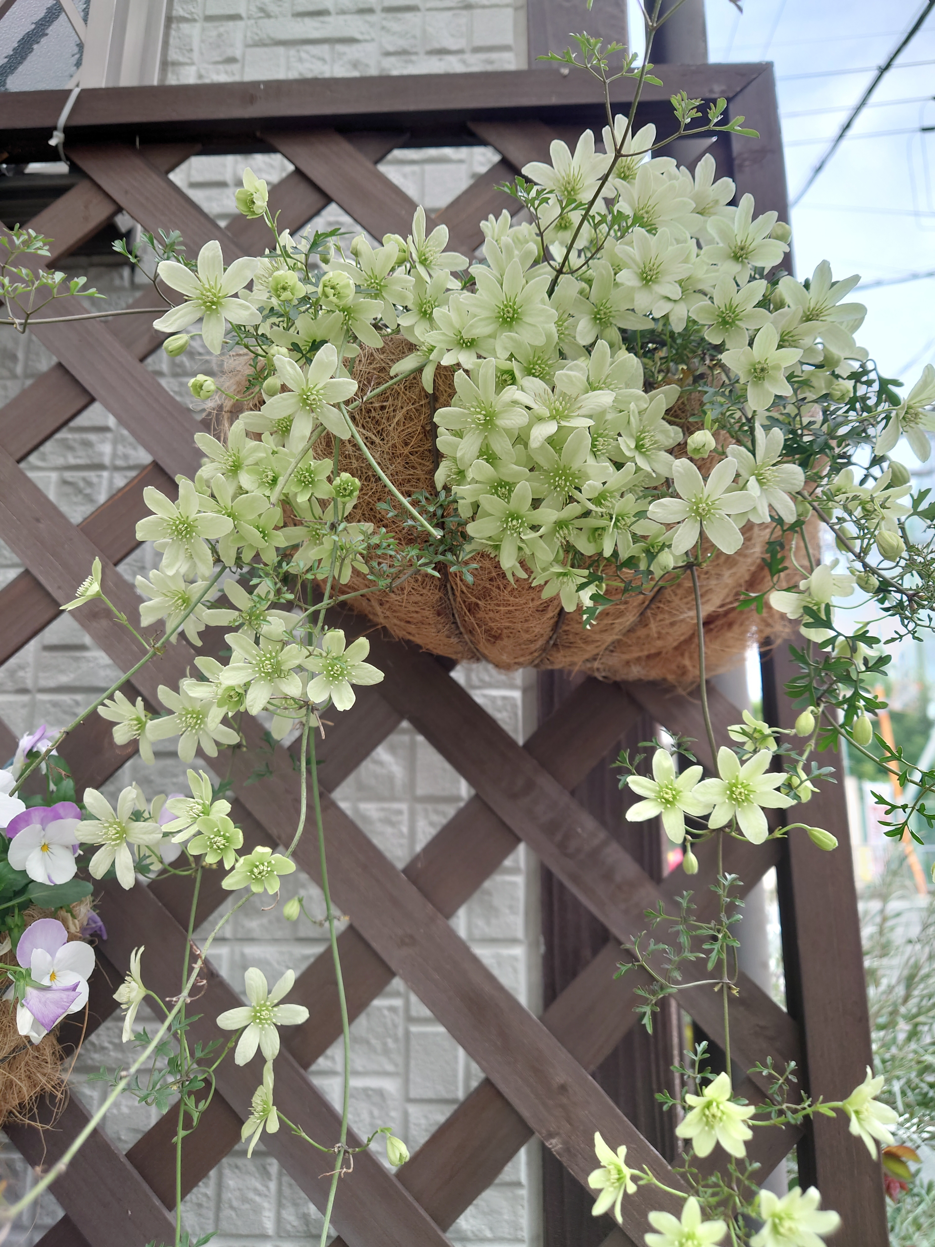 投稿を表示クレマチスでハンギングができるのですね🤩垂れてるところもくしゅくしゅっと咲いてるところも素敵です💓