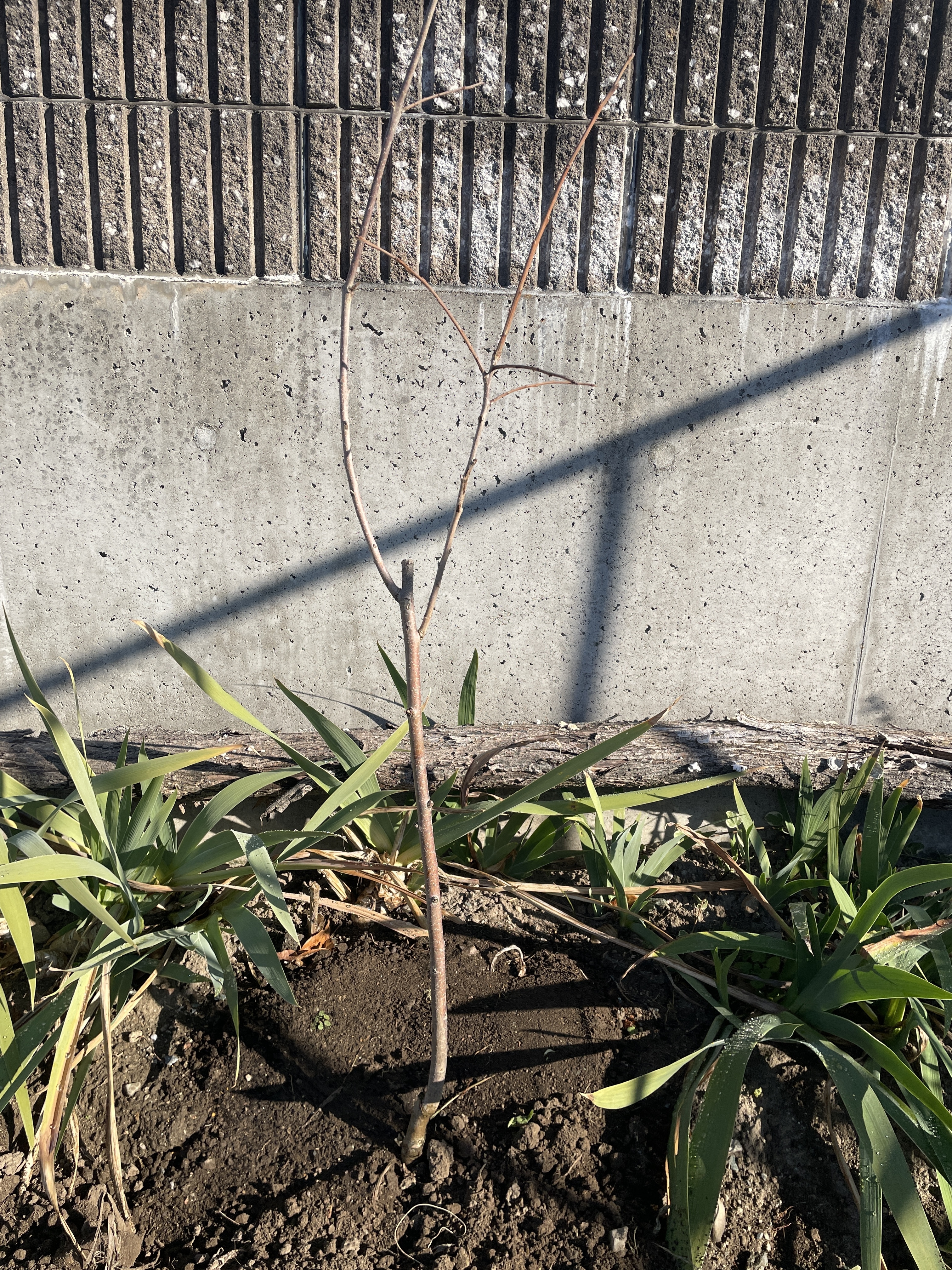 妻が柿の苗木を300円で投げ売りされてたのを近くのカインズさんから買ってきました。