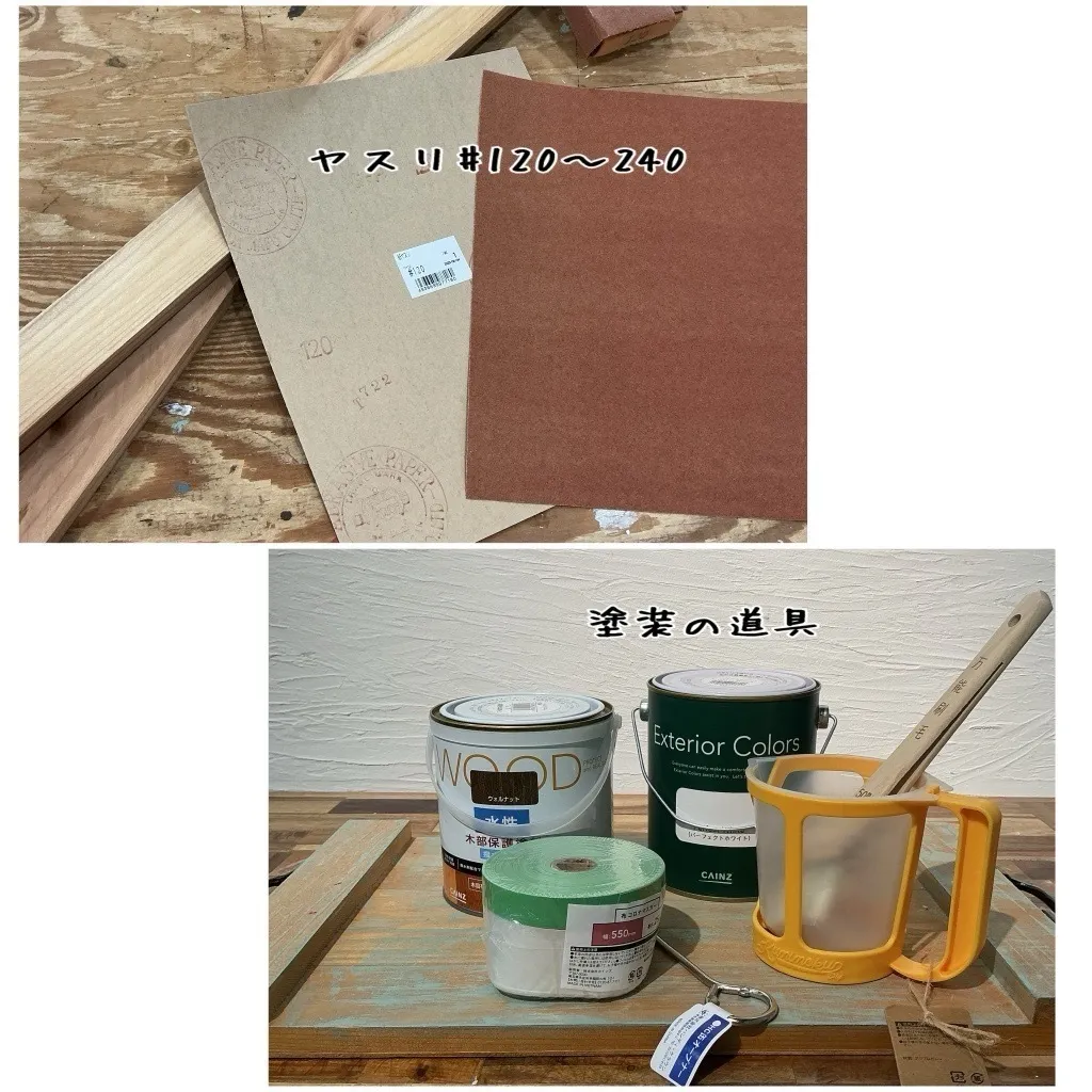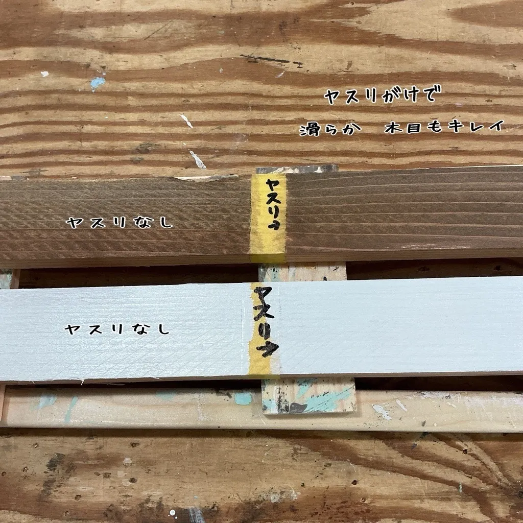 ヤスリがけ、と木目に沿って塗装する✨勉強になります😊