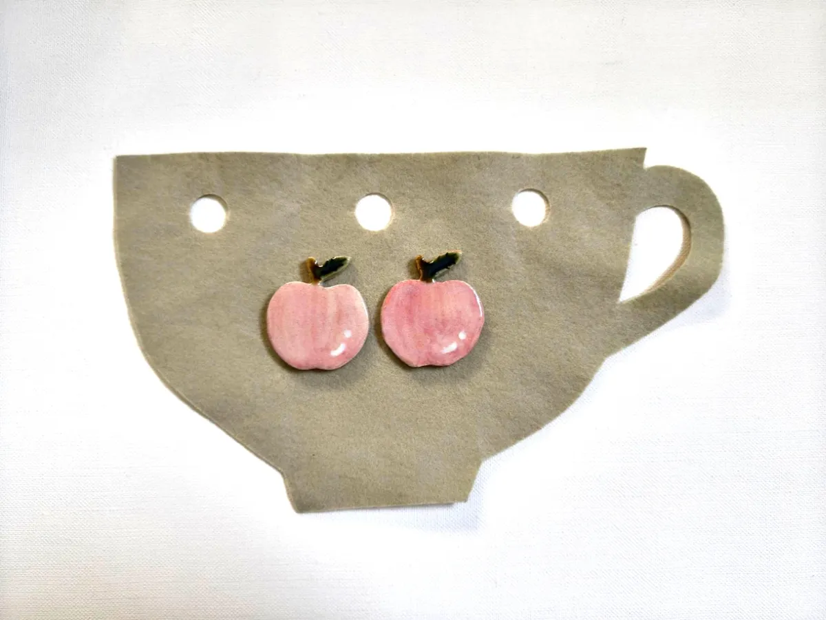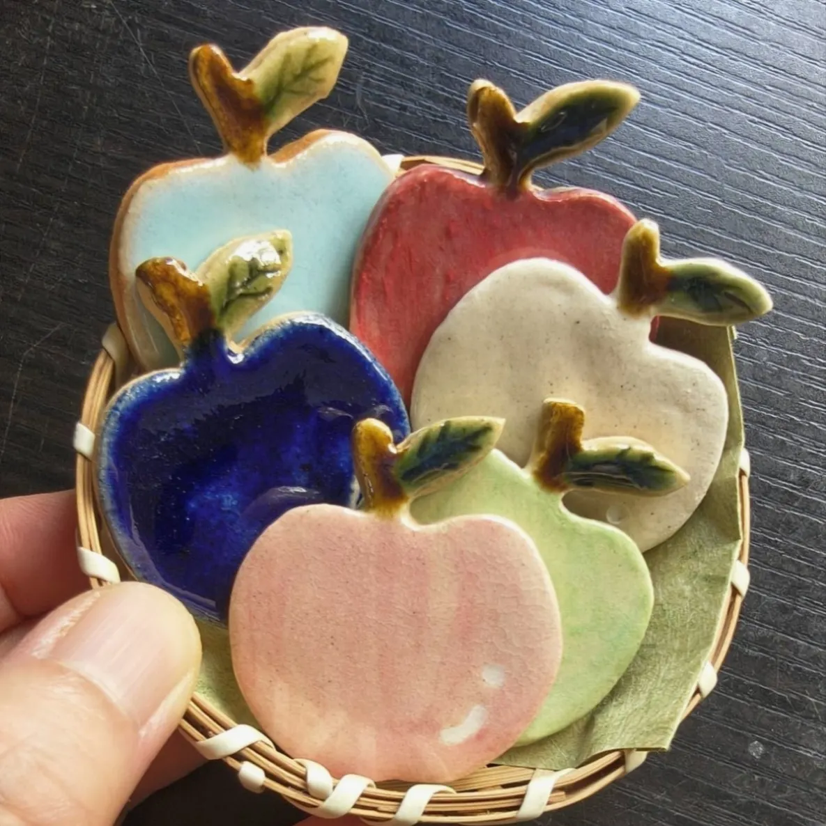 以前より【りんごの箸置き】は何色かつくってきましたが、今回、新色『桃色りんご』を作陶しました♪
