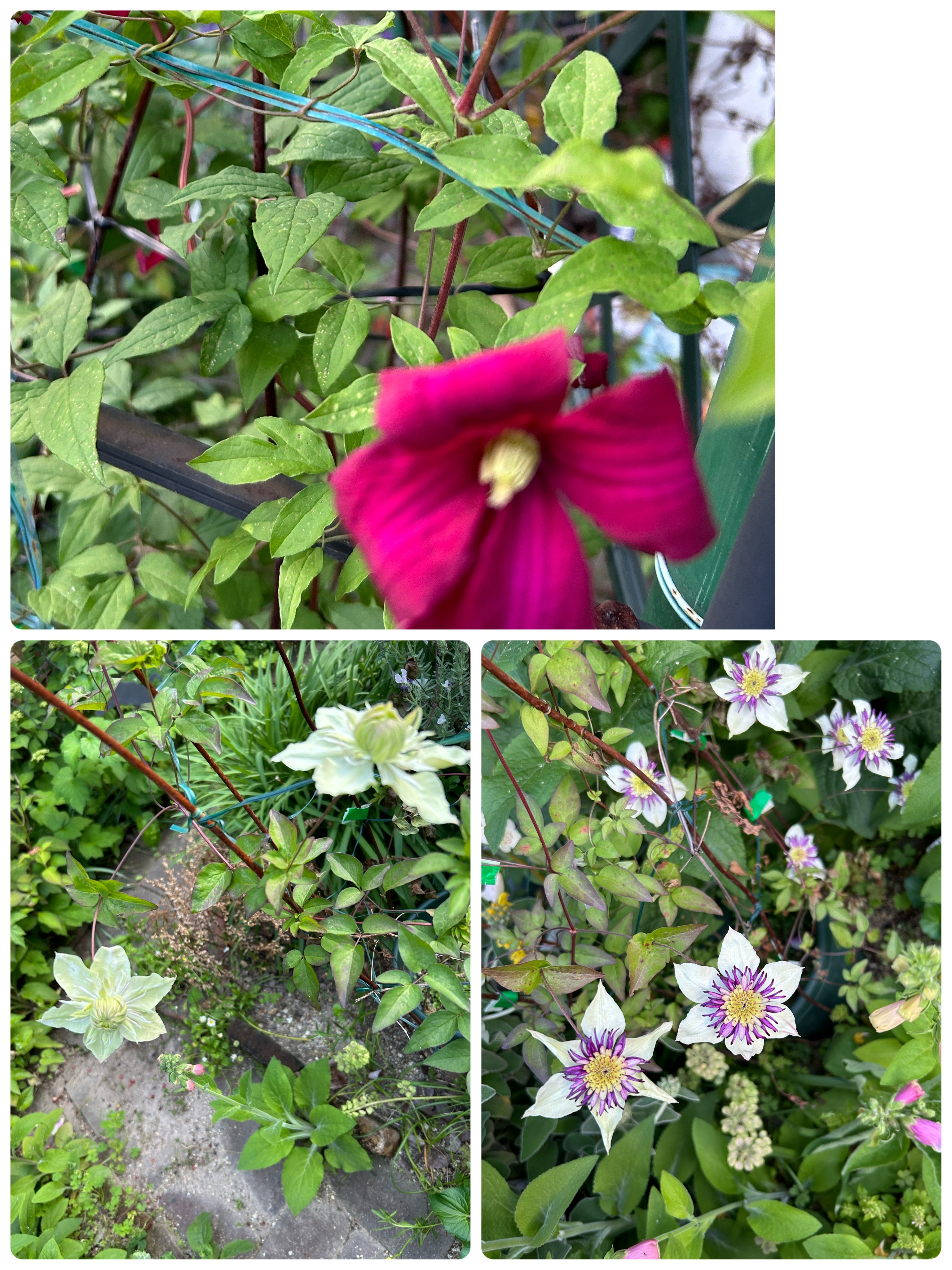 クレマチスが同時に、花が咲いていて綺麗ですね。😌🌸💕