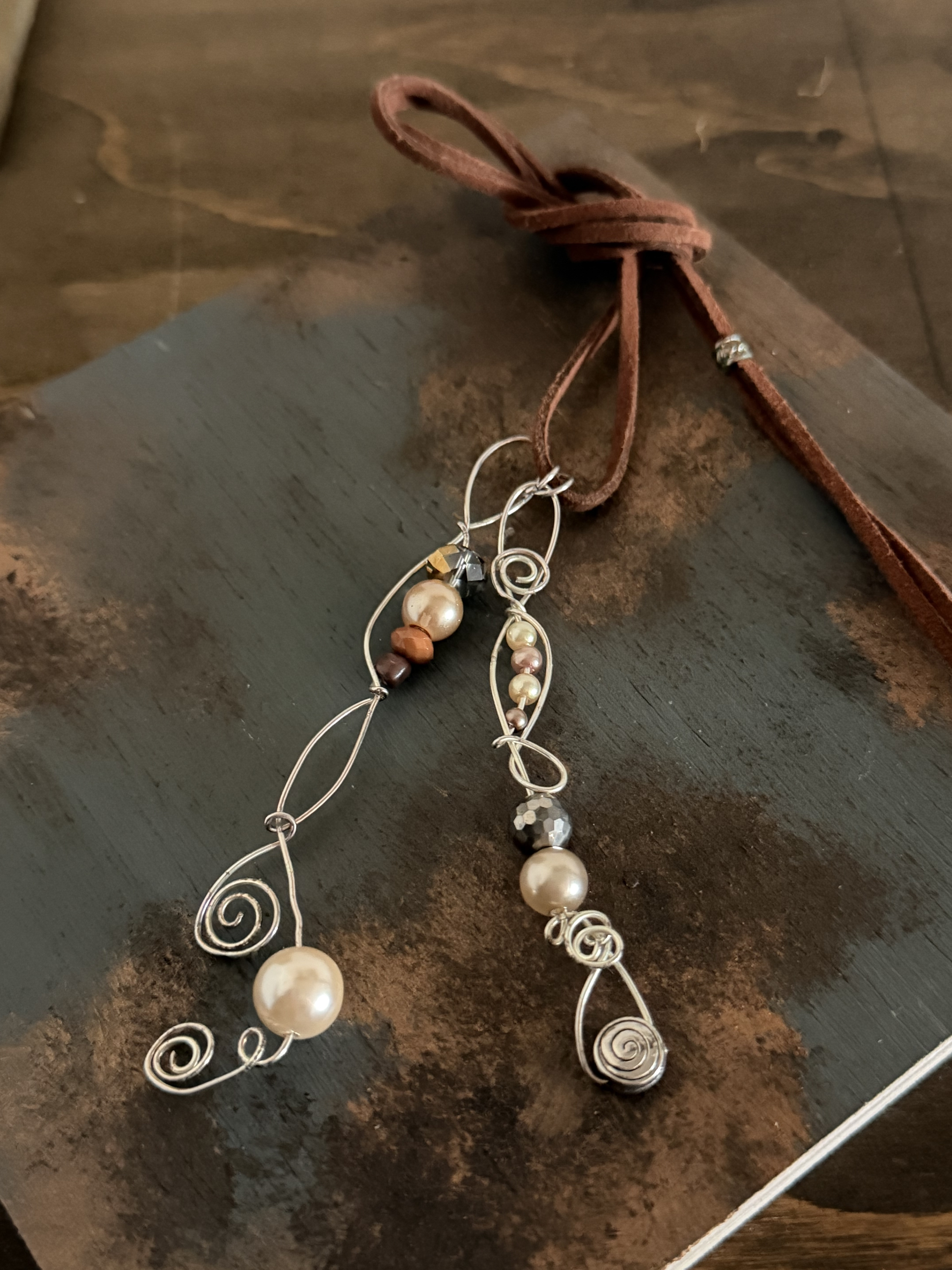 投稿を表示無限にいろんなデザインができて、使うワイヤーや合わせるパーツ、革紐チェーンによってもガラリと雰囲気が変わりますね😊