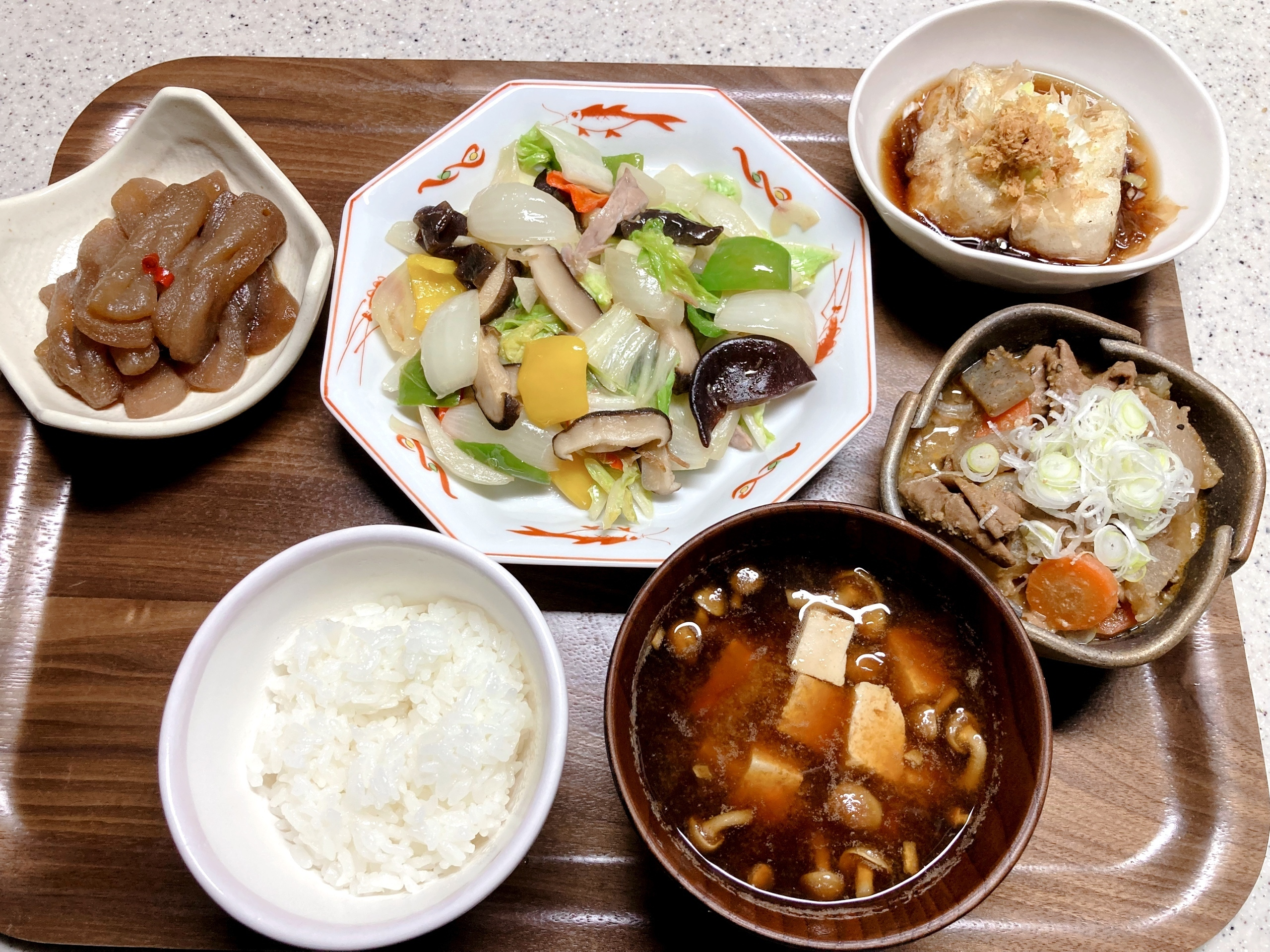 野菜炒めは 一度油通しをしたので ついでに揚出し豆腐も作りました