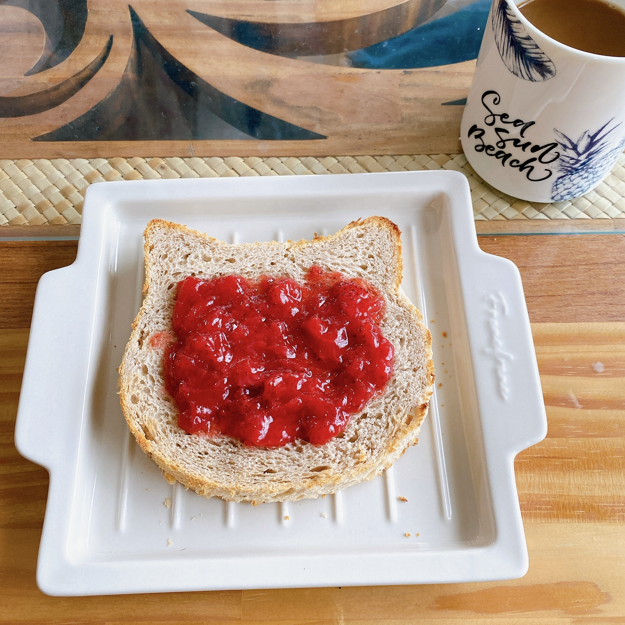 投稿を表示真っ赤で美味しそうなジャム、私も頂きたいです。ニャンコ型の食パン楽しいですね。 😊