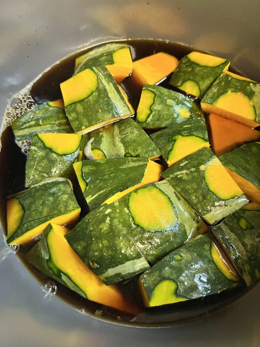 トップ > クッキング レシピ > 料理 > かぼちゃの煮物 さくら♡ 2025/10/21 21:31 かぼちゃの煮物 ■材料 かぼちゃ 1/4 ☆水 200cc 醬油 大さじ1.5 みりん 大さじ2 砂糖 大さじ1 ■作り方 ①⭐︎を鍋に入れて火にかけ、沸騰したら火を止めて皮を上にして並べる。 ②再び中火にかけ、煮立ったらスプーンで煮汁をかけ、ぬらしたキッチンペーパーをかぶせて弱火にし、蓋を少しずらして10~12分煮る。 ③竹串などで固さをみて、火を止めてフタをとり、10分ほどおいたら出来上がり。 ■工夫ポイント 濡らしたキッチンペーパーで落とし蓋になり、しっかりと味が染みます。 いいね 共有する 共有する X LINE リンクをコピー コメントする 1 件の返信 (新着順) ミュートしたユーザーの投稿です。 投稿を表示 まっさん 2025/10/22 13:04 ホクホクとして美味しそうです。 カボチャ🎃の煮物、結構苦手です。 毎度、味染みが違うのが難点で、 そぼろあんかけにする方が多いです。 大好きな食材なのだけど、シンプルな方が難しいです。濡らしたキッチンペーパーを使って頑張ってみます。✊ いいね 返信する ミュートしたユーザーの投稿です。 投稿を表示 さくら♡ 2025/10/22 16:40 まっさん かぼちゃの煮物って、かぼちゃの甘味にめっちゃ左右されますよね😅 今回のかぼちゃは少し甘味が少なかったです😂 いいね 返信する