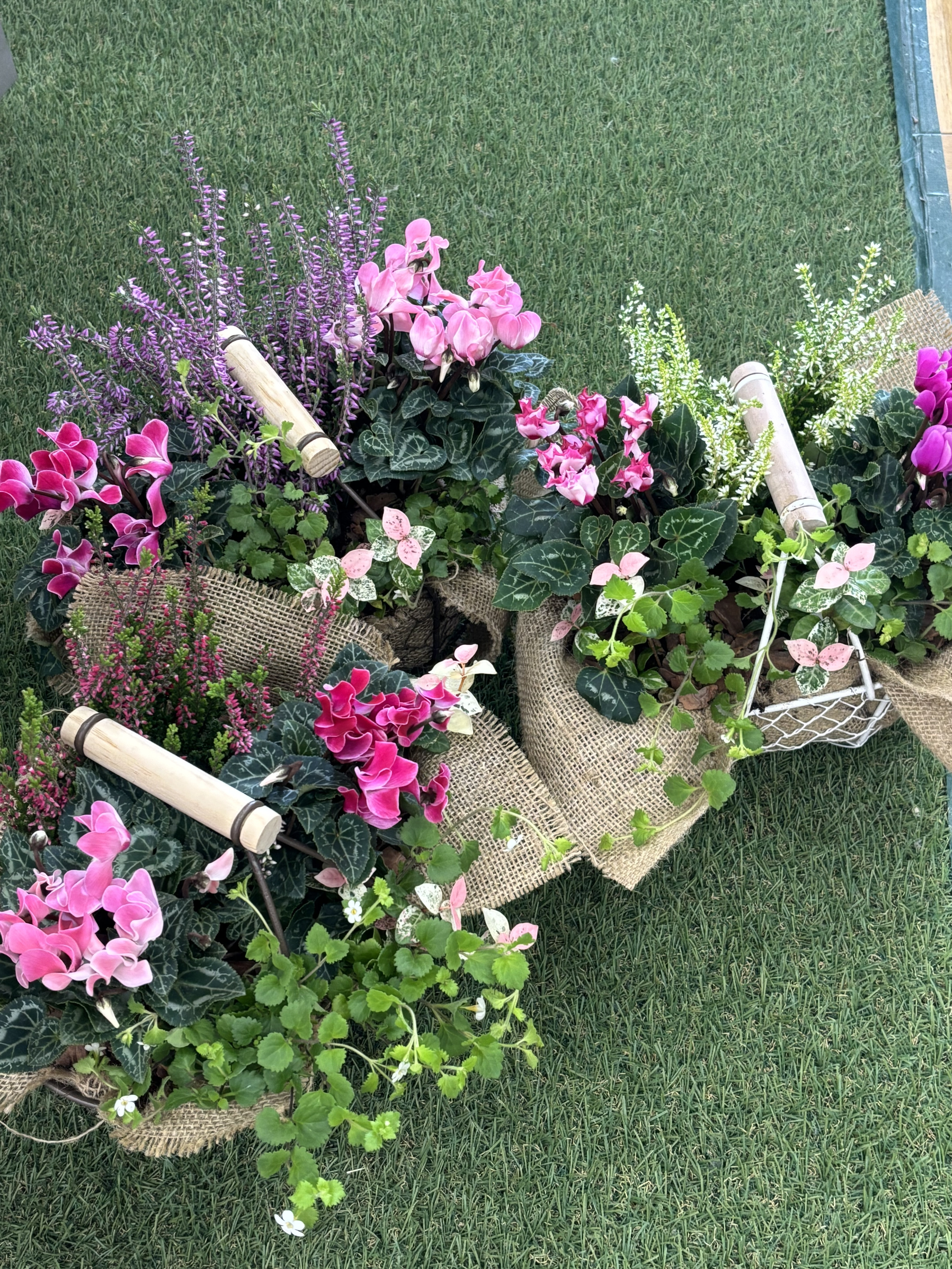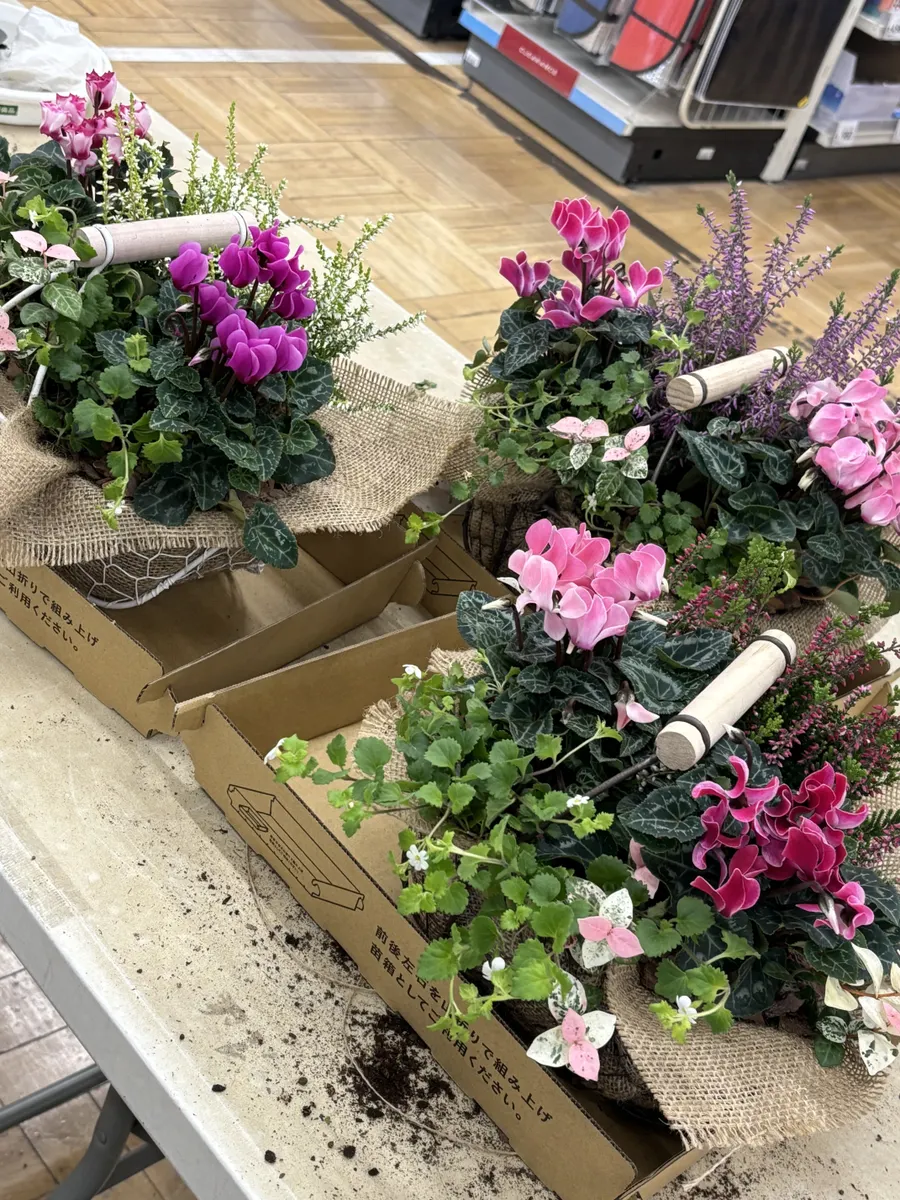 投稿を表示私は今日の午後参加で〜す🩷バスケット2色ありそうかなどっちにしようかな❓花材色選び参考に成ってモカさん投稿嬉しいな🩷