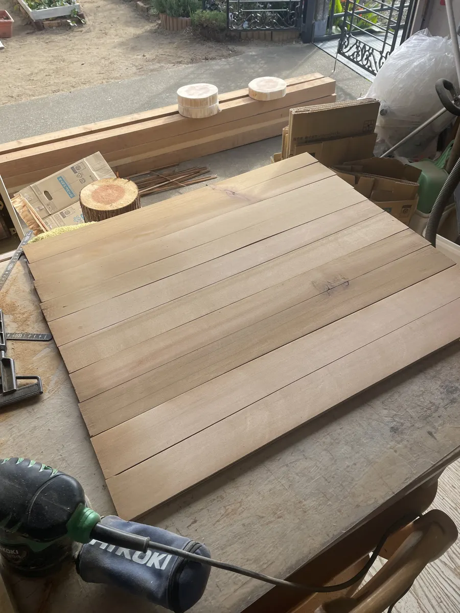 次にプランターの土を入れる部分を作りましょう〜、こちらも頂き物のガッサガサな長さも幅もマチマチな板です♪