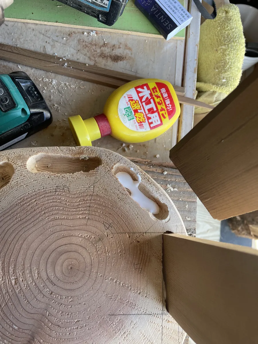 普段あまり使わない木工用ボンドをたっぷり塗ってと。。