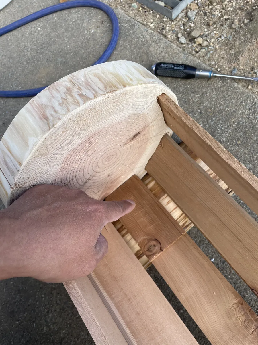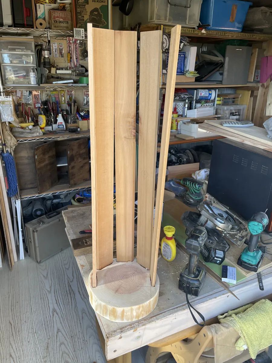 ■作り方 丸太をスライスして板を挟めるだけの簡単施工