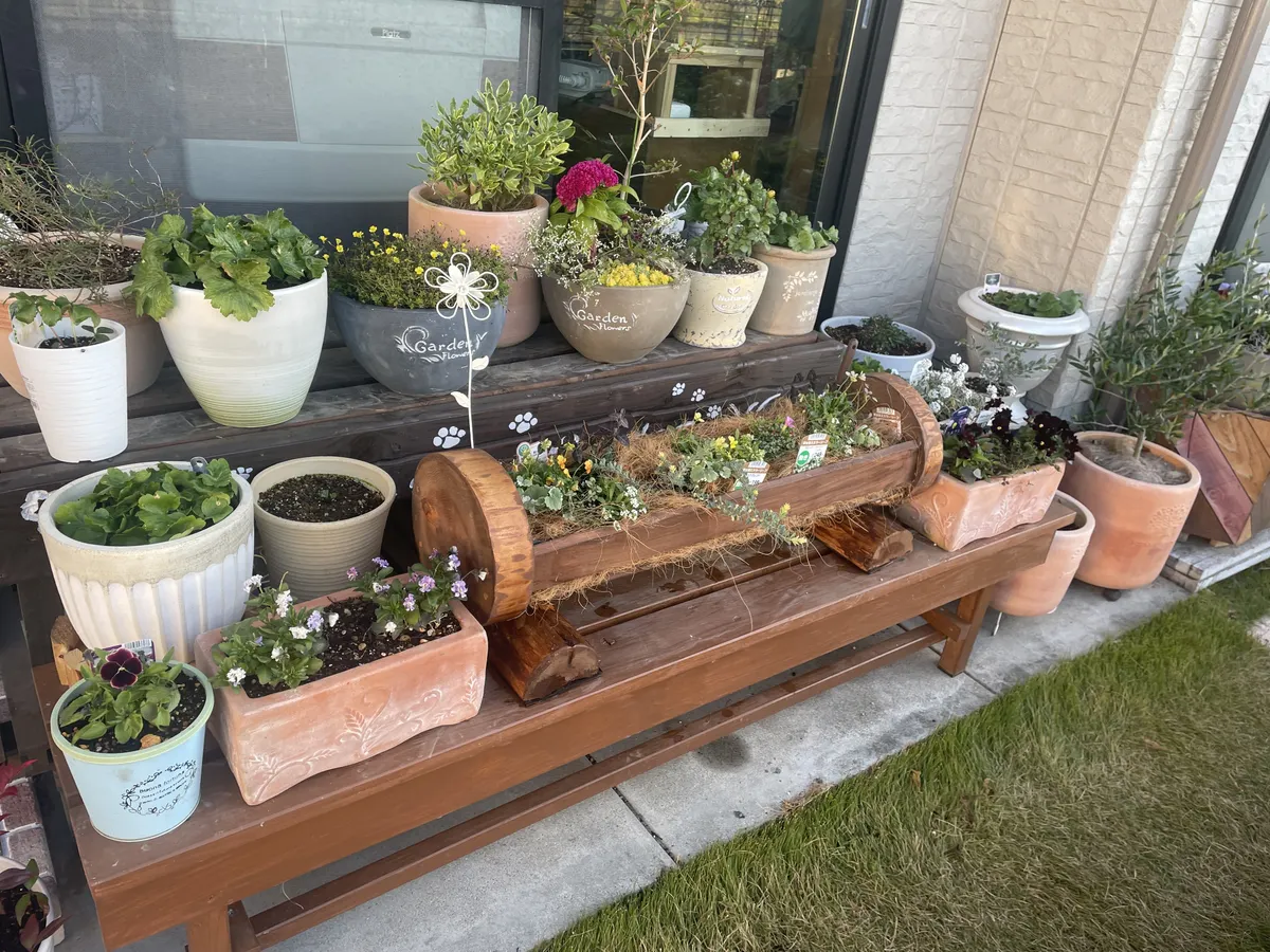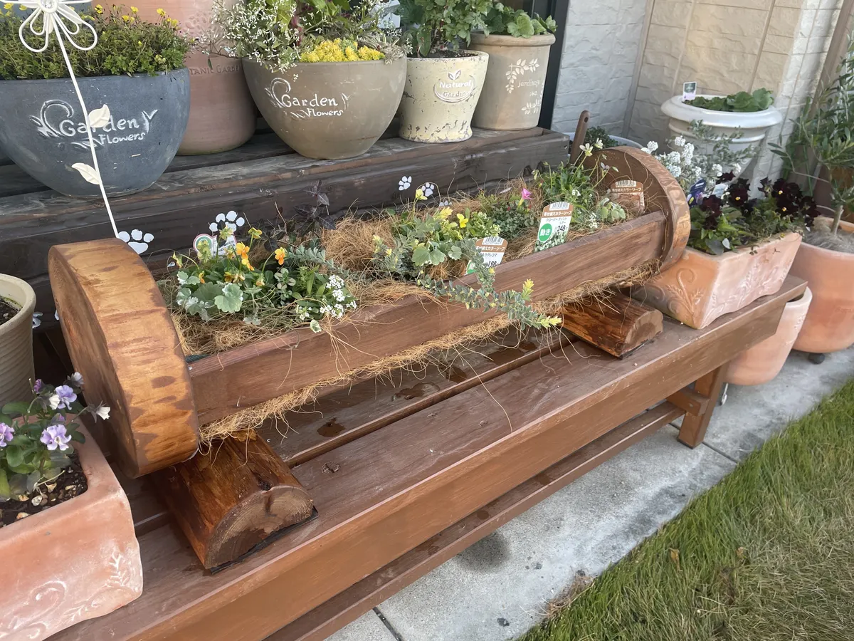 植木鉢コーナーに木の温もり感じるプランターが完成しました😄
