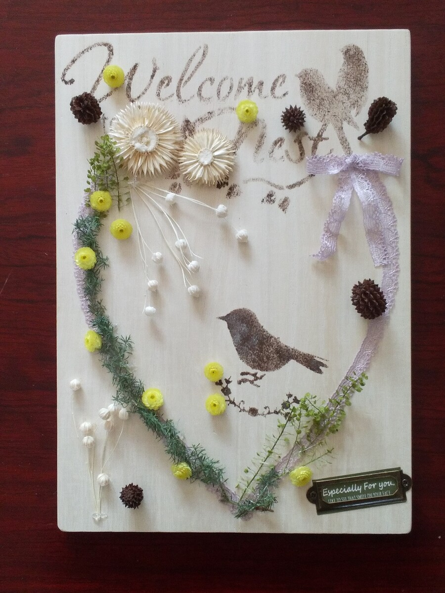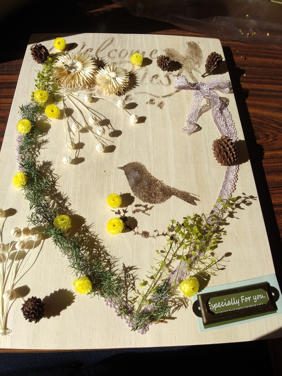 市の講座で、ステンシルやレースの飾り付け、そしてドライフラワーの飾り付けと盛り沢山ですね。💕