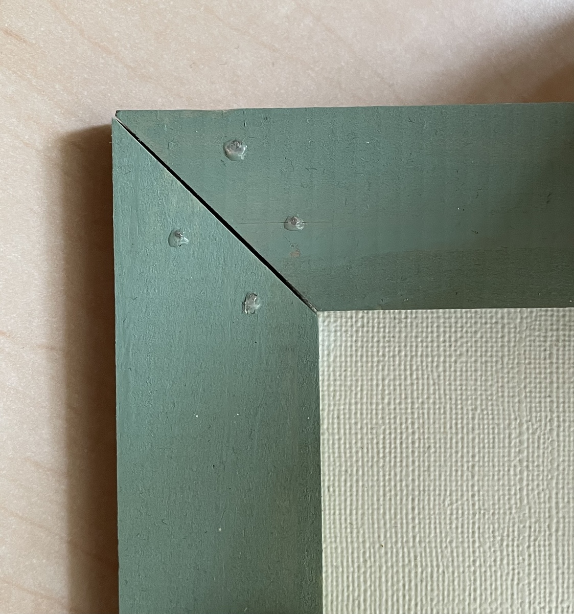工程で、フレームの角は、表側からタッカー打ちですが、子供が、タッカーが目立つと気になり、相談し、裏側からOKとタッカーは、裏側からに変更しました。