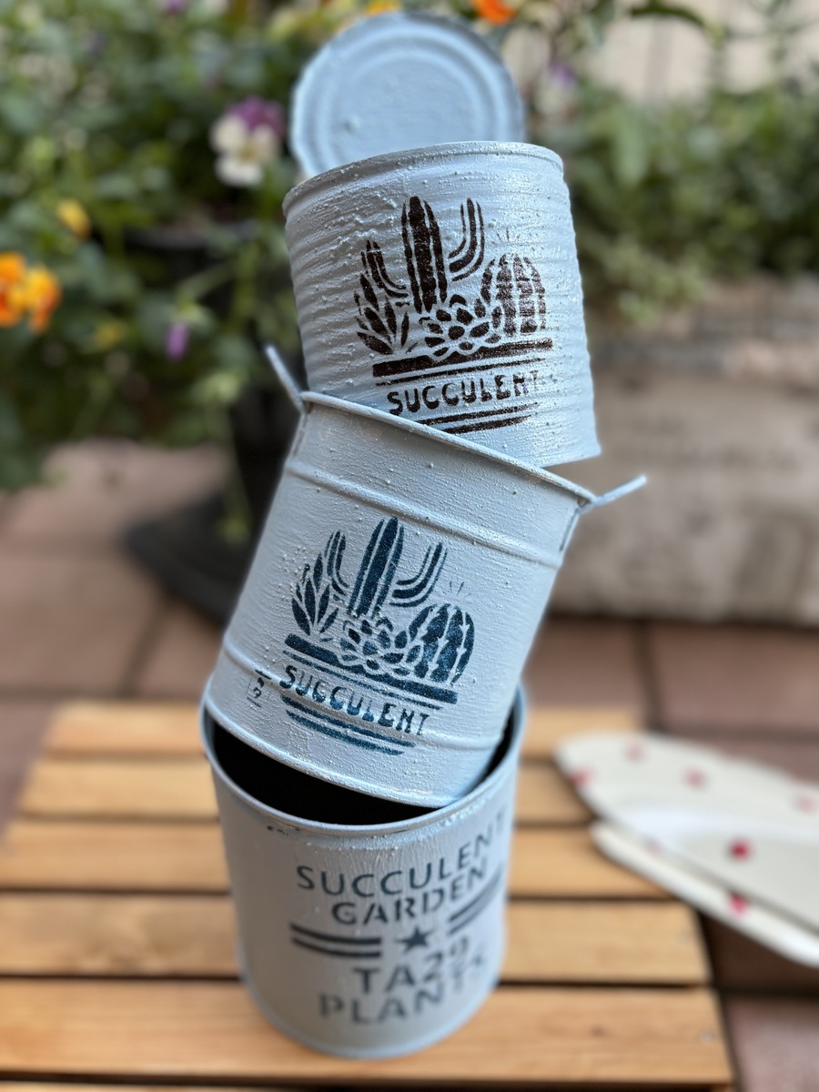 そう!!貯めといてまとめてやる方が効率いいですよね。私はちょこちょこやるからその日の気分でリメ缶がイロチーになって花台がゴチャついて見えるのかも💦ステンシルも素敵😍✨