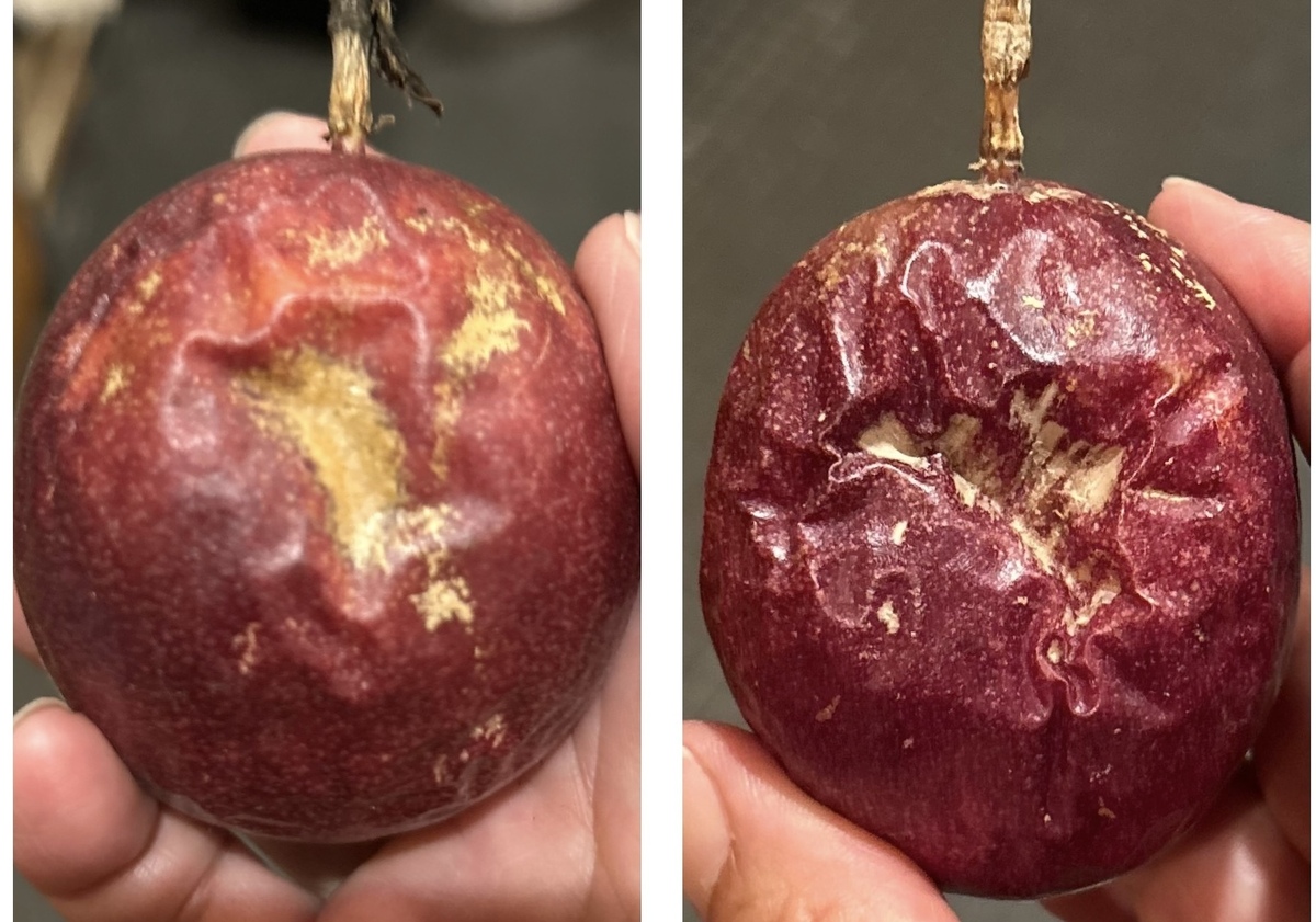 トップ > グリーン > パッションフルーツ シダーローズ 2024/08/25 13:28 パッションフルーツ 木に残ったパッションフルーツも後1個になってしまいました。 落果したのは順調に追熟しています。 ネットをかける前に落ちてしまったのはやはり傷ついていたようで皮の一部がこんな感じになってしまいました。 でも切ってみると… 中は全く大丈夫。 硬い外皮とスポンジ状の内壁にしっかり守られていました。 いいね 共有する 共有する X LINE リンクをコピー コメントする 3 件の返信 (新着順) ミュートしたユーザーの投稿です。 投稿を表示 かずん 2024/08/26 04:50 お疲れ様です- ̗̀( ˶^ᵕ'˶)b あと残り1個ですか•́ω•̀)? 今年の激暑で色々気を揉む事もあり大変でしたよね😰 シダーローズサンの解説で なるほど🤔中のスポンジ状は 果樹自ら 落下を想定しての事と分かり 納得出来ました✌️ 初めて食べた時 変な果物と思いましたが 硬い皮にスポンジ状の内側… 衝撃を抑える為の遺伝子プログラムが組み込まれていると思ったら最終形態までもが面白いですね💕︎ いいね 返信する ミュートしたユーザーの投稿です。 投稿を表示 シダーローズ 2024/08/26 06:58 かずん まさにヘルメットの構造のようだと思いました。 随分ハラハラさせられましたけど、過ぎてしまえばこれもまた勉強になったんだと思えます。 今年は結構大変だったので来年はもうやめようかと思ったんですけど、1度地植えで育ててみたいんですよねー。 来年はチャレンジするかもしれません。 いいね 返信する ミュートしたユーザーの投稿です。 投稿を表示 かずん 2024/08/26 20:41 シダーローズ エッ やめようと思っていたのですか〜💦 私は地植えしか考えていなかったんです😅 昔育てた時も地植えで ほっといてもワンサカ 花は咲いたんです🌸 でも 着果しないので もういいや〜と処分してしまいました💦 教えて頂いたので来年チャレンジしてみますね🥰 いいね 返信する ミュートしたユーザーの投稿です。 投稿を表示 suimo 2024/08/25 22:09 中は大丈夫だったんですね。また来年も楽しみですね (つ≧▽≦)つ いいね 返信する ミュートしたユーザーの投稿です。 投稿を表示 シダーローズ 2024/08/26 07:02 suimo 今年は順調に人口受粉できたと思ったら奇形花が出現したり、高温障害が出たりとなかなか大変でした。 結局終わり良ければ全て良しなんですけど、来年は地植えに挑戦してみようかな、なんて思ってます。 いいね 返信する ミュートしたユーザーの投稿です。 投稿を表示 パール 2024/08/25 15:12 無事に食べられて良かったですね。😊我が家は今年は花も咲きませんでした。😅 いいね 返信する ミュートしたユーザーの投稿です。 投稿を表示 シダーローズ 2024/08/25 15:26 パール あらら💦 どうしちゃったんでしょう? でも、何年も育てている人でも豊作、不作がかわりばんこに来るって言ってましたね。 いいね 返信する