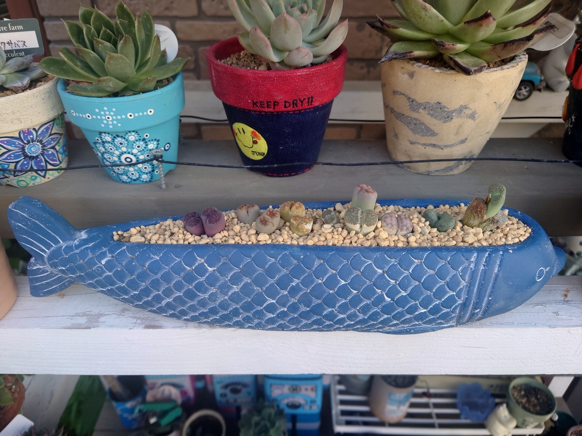 リトープスが入居した青いお魚さんの鉢が良いですね〜🥰 私好みです😆