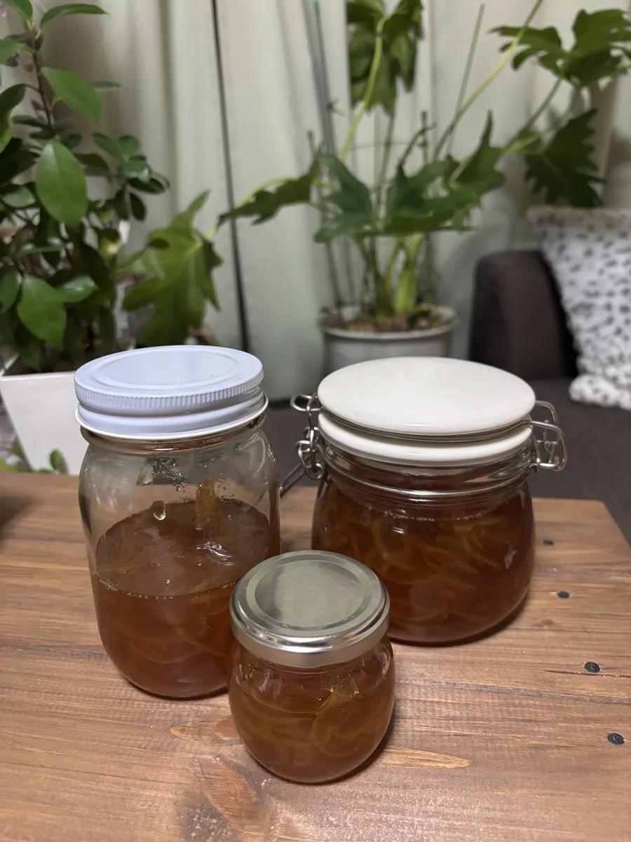 トップ > クッキング > その他 > ゆず茶の素 cecil 2025/12/18 19:26 ゆず茶の素 柚子をいただきました。今は禁酒中なので柚子酒を仕込むのをあきらめてゆず茶の素にしました。 推しのBlu-rayを見ながら柚子を絞ったりタネを取り除いたり皮をきざんだり。 ほぼ柚子ジャムと同じなのかなぁと思いながらお砂糖を少し減らした代わりに蜂蜜をいれてぐつぐつ煮込んでいました。 途中あくをとるのも 🎶キリがないから、ここで終わらすだけなの🎶 と切り上げて完成しました。 柚子600gでこれだけできました‼️ いいね 共有する 共有する X LINE リンクをコピー コメントする 1 件の返信 (新着順) ミュートしたユーザーの投稿です。 投稿を表示 パール 2025/12/19 07:27 柚子茶温まっておいしいでふよね😋🎶 私も作らなきゃ😅 いいね 返信する ミュートしたユーザーの投稿です。 投稿を表示 cecil 2025/12/19 09:19 パール 早速味見しましたら甘さが控えめでごくごくいけちゃいました。 パールさんも冬仕事がんばってください😉🫶 いいね 返信する ミュートしたユーザーの投稿です。 投稿を表示 パール 2025/12/19 09:50 cecil はい😊🎶 いいね 返信する