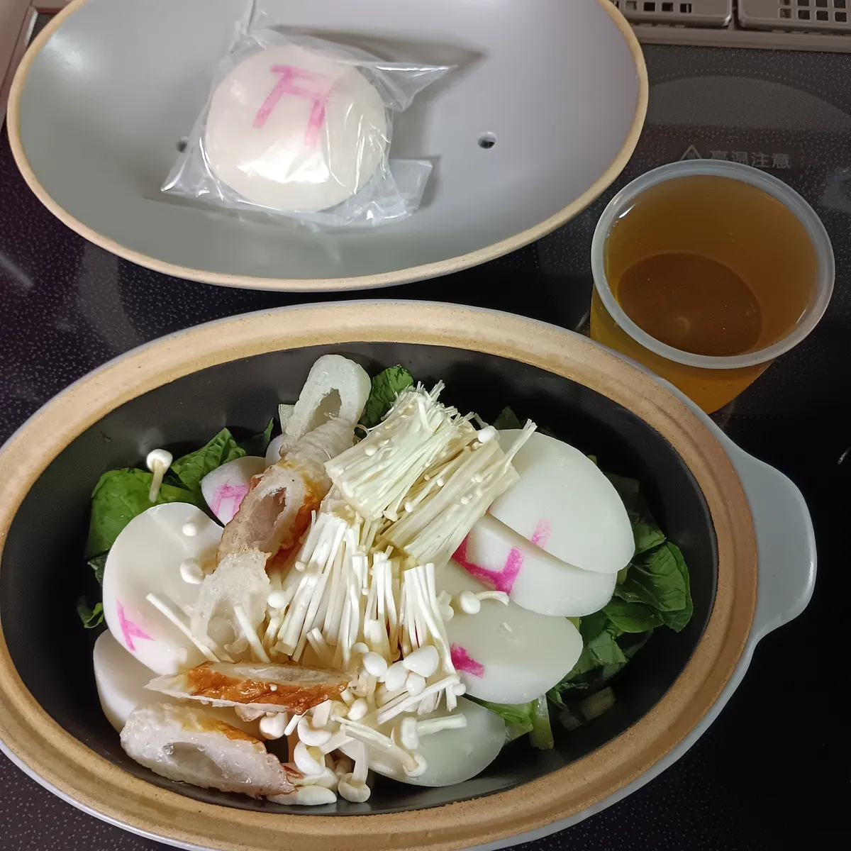 きのこ(椎茸がよかったけれど、えのきしかなくて😂)ちくわを切って入れる