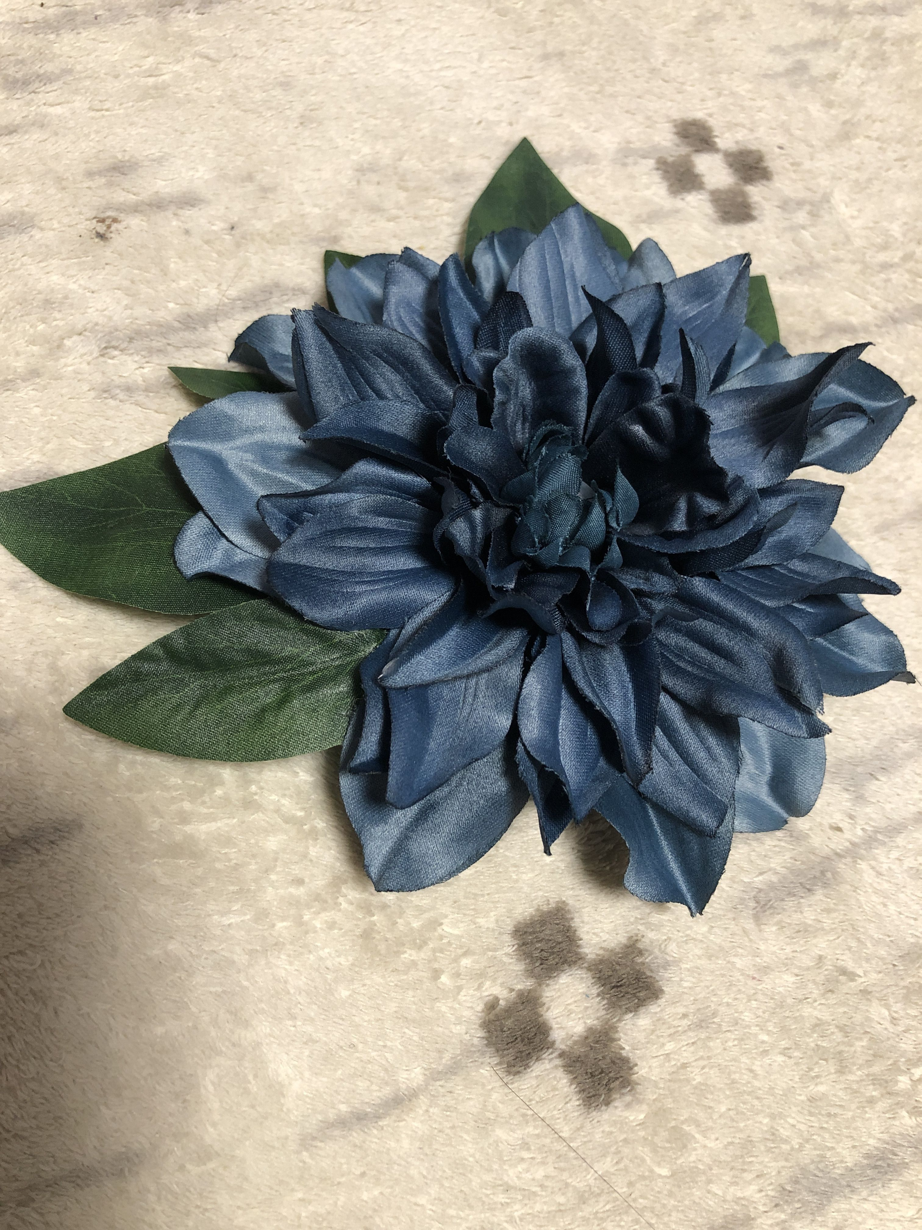 花と葉の部分を取り外し、グルーガンで花に葉を貼り付けて安全ピン🧷を縫い付けただけ。