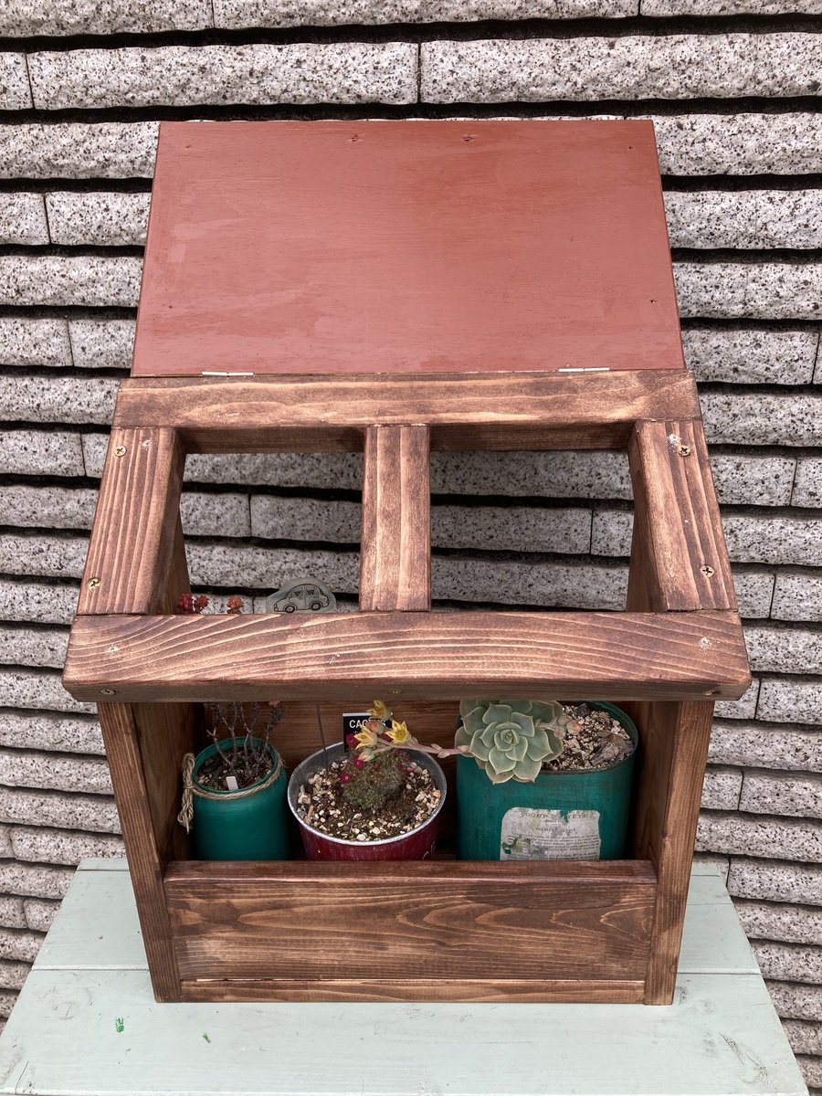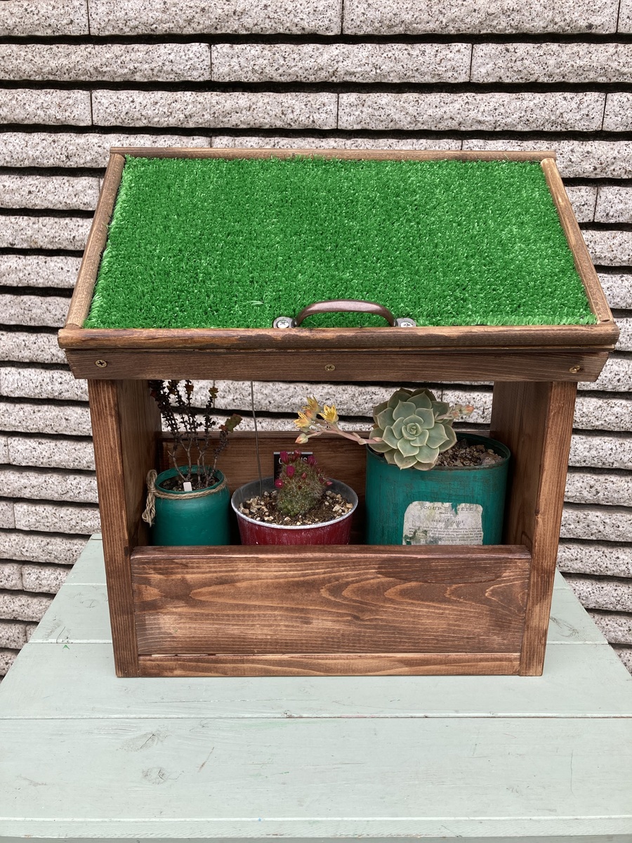 波板を付けずに素麺箱の上に人工芝を取り付けて開閉式にされるアイデア素敵です😍